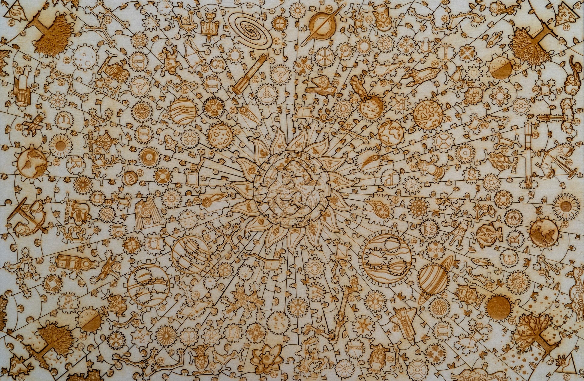 Back Artwork: The Cosmic Dance Flip the puzzle over to embark on an astronomical journey. The vastness of our solar system sprawls before you, with each season casting its own unique hue over the celestial bodies. Discover more than 75 exquisitely engraved cosmic objects, each telling its own silent story of the cosmos.
