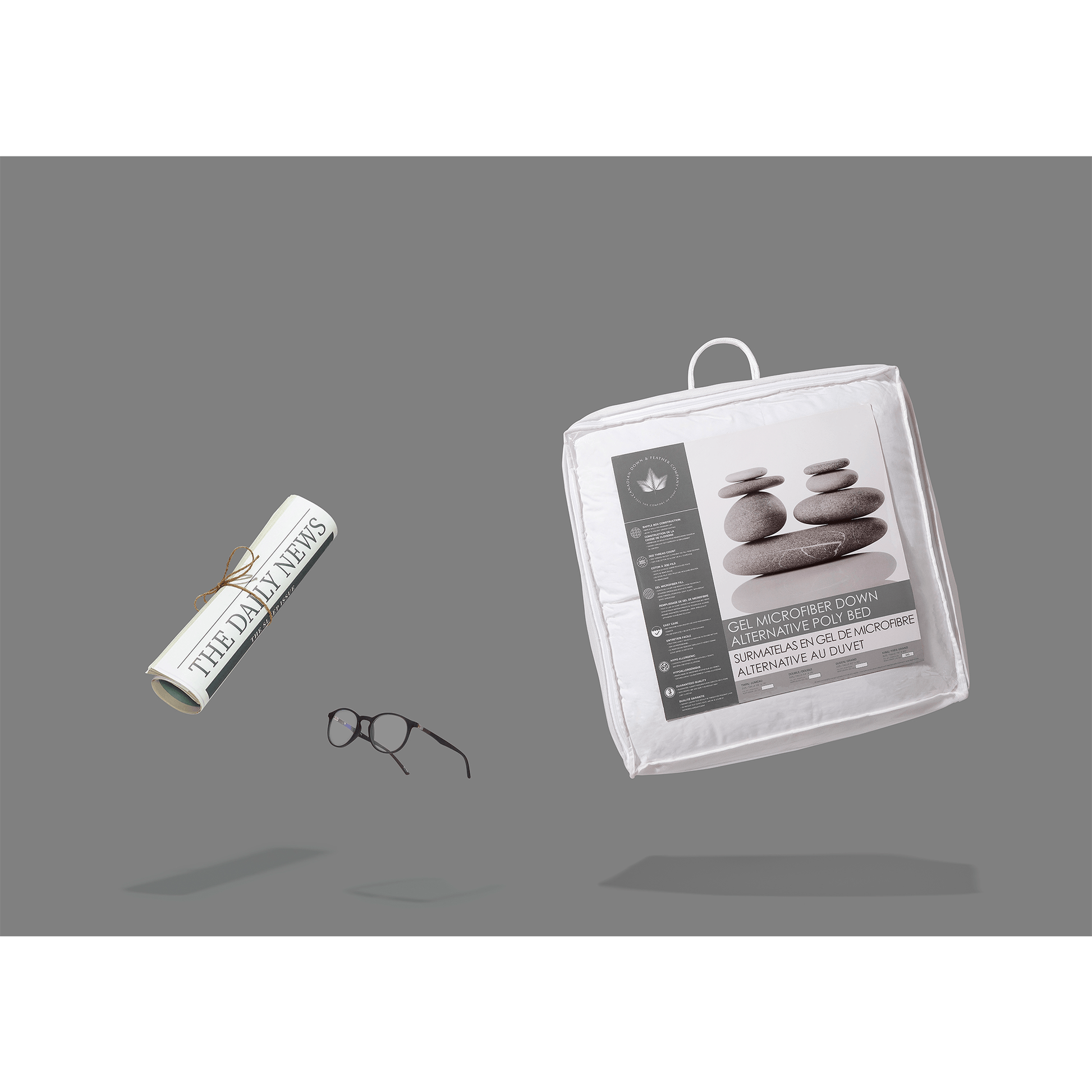 Is your mattress too firm and hard? Are you looking for added softness? If so, this mattress topper is for you :) This plush poly bed is filled with microfiber, which is a fluffy polyester designed to mimic the softness of down. The outer shell is soft 300 thread count cotton, and features corner elastics for affixing to the mattress.