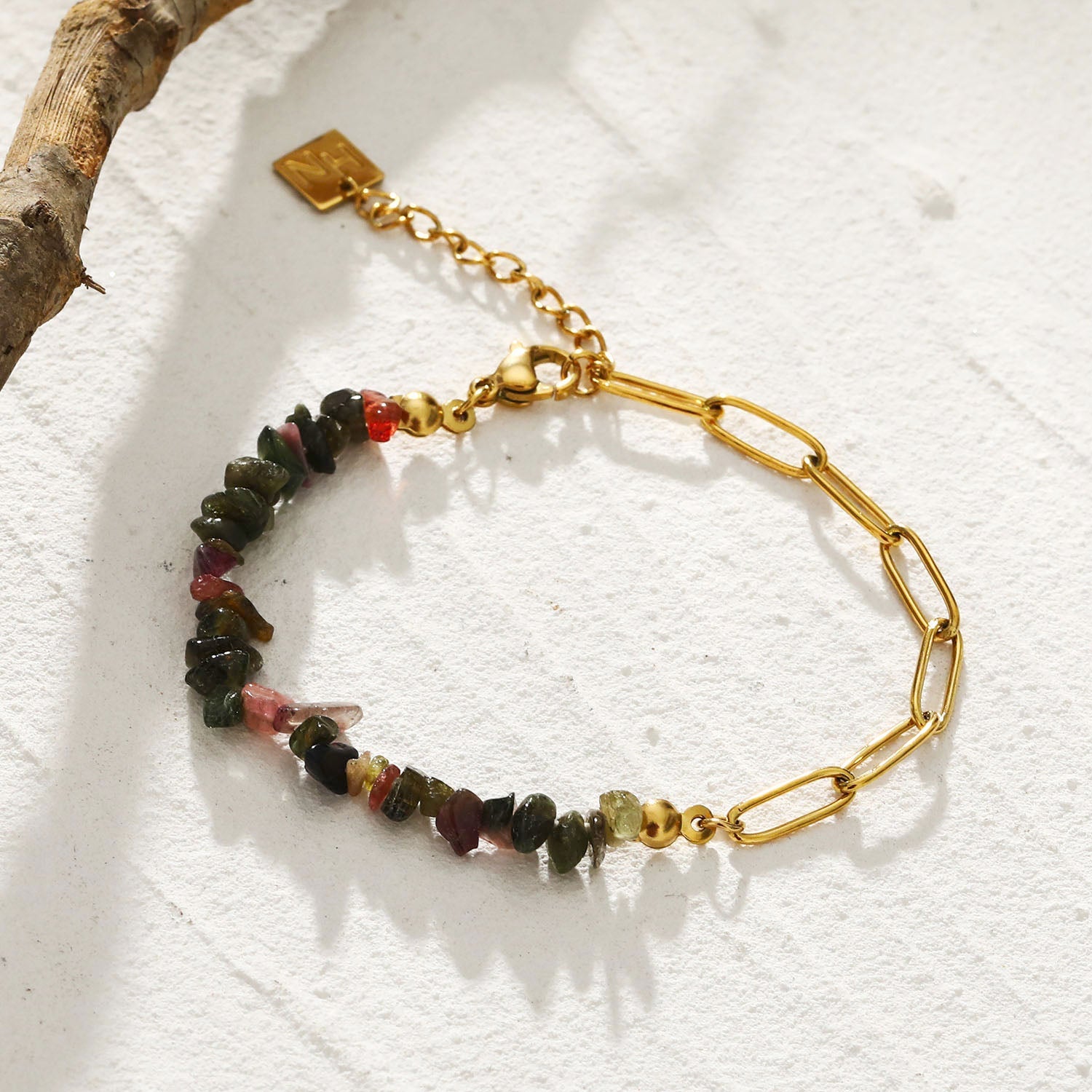 GIRADOT Paper-Clip Linked Chain & TOURMALINE Gemstones Combination Bracelet