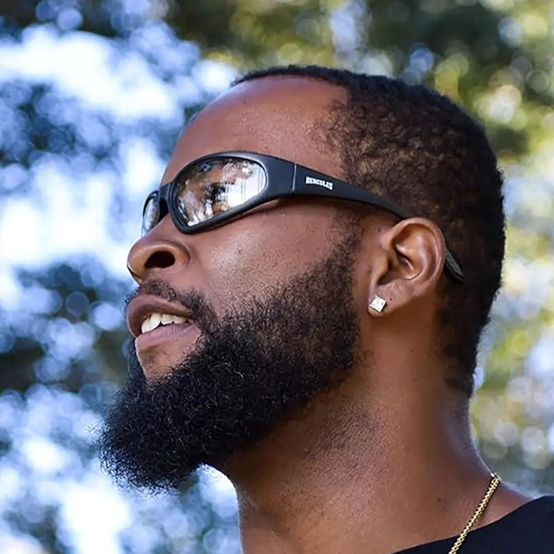Ride in style with Global Vision's Hercules 24 sunglasses. With a resilient nylon frame and durable lenses, the Hercules 24 lives up to its name while keeping your eyes protected from harmful UV rays and adjusting to the changing sunlight.