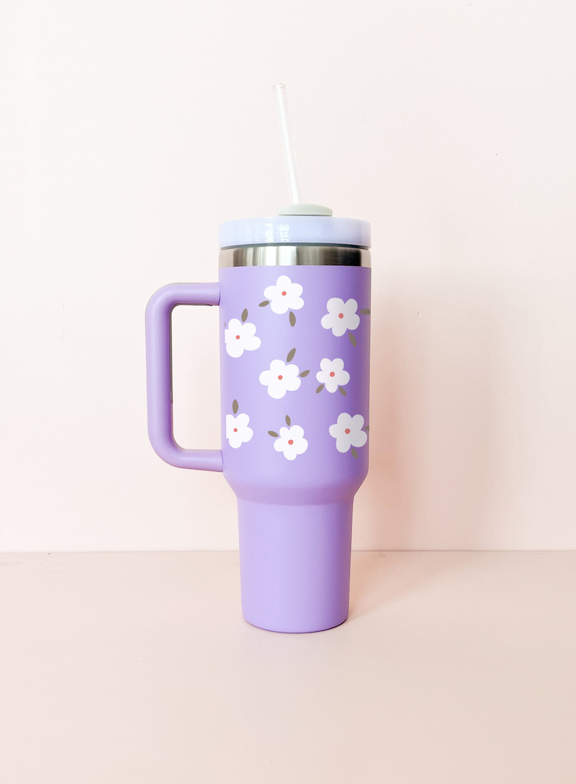 Gobelet isotherme 40oz - lavande fleurs d'hiver
