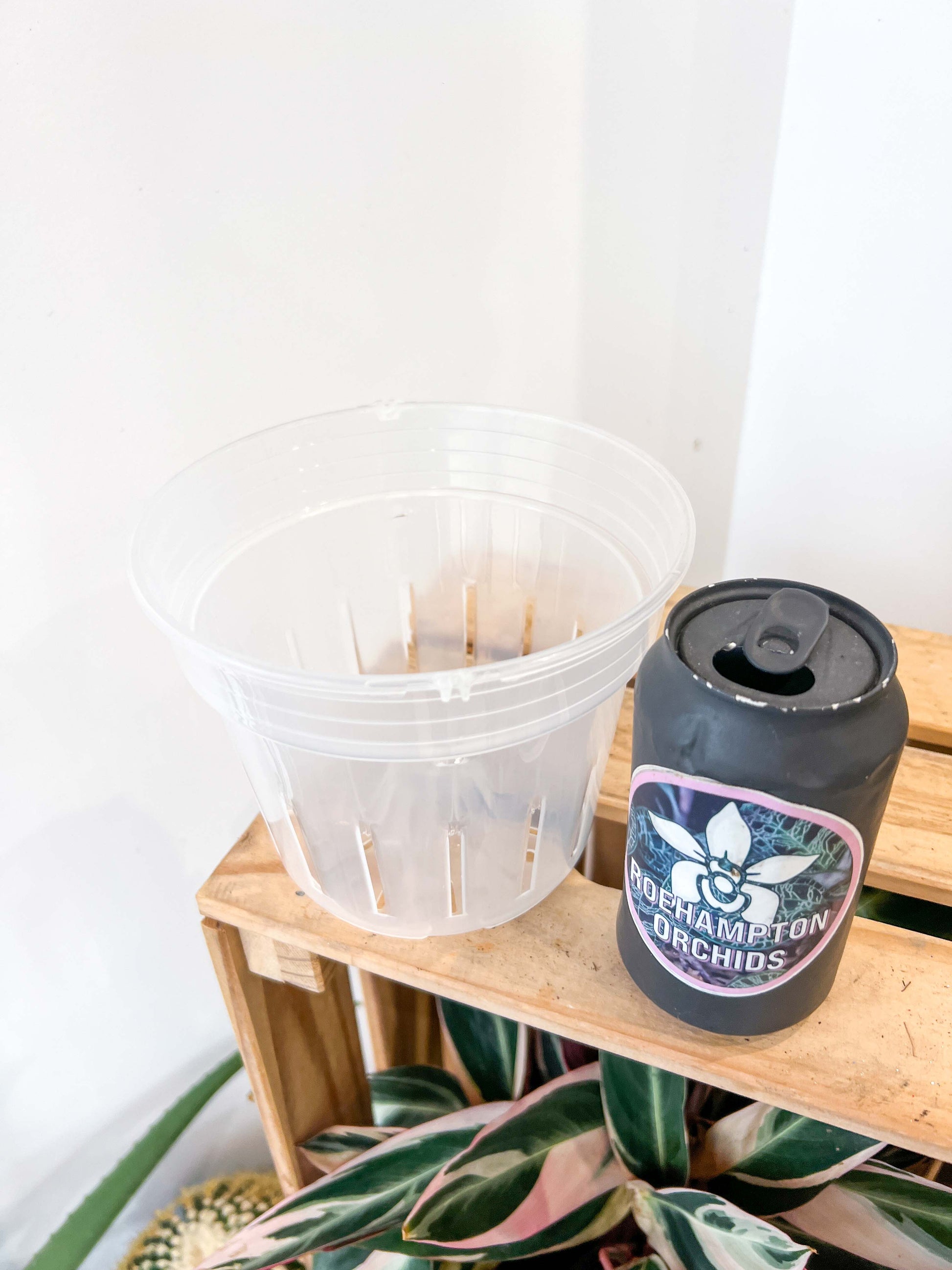 High quality semi-transparent semi-flexible plastic slotted pots of varying sizes. The slots allow better air flow to the root zone, reducing the chances of rot. This is great for epiphytic orchids that needs their roots exposed to light. It also allows you to monitor their root growth. Pots have hanging nodes for easy wire attachments