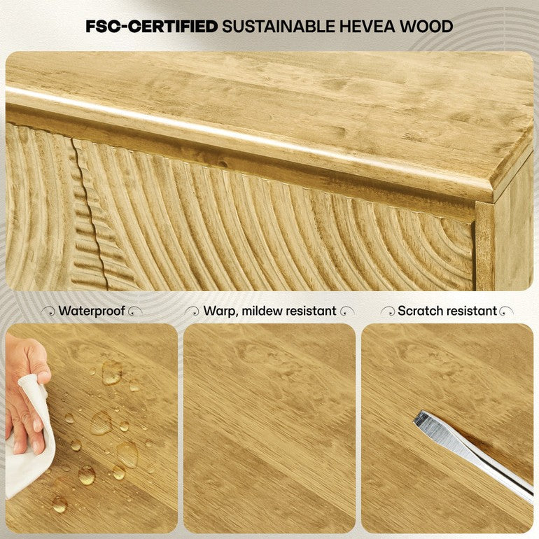 The acacia wood used in the Harmony TV Stand with Storage is known for its rich color and beautiful grain patterns. This means that each unit is unique, ensuring your stand is one-of-a-kind. It's not only a functional piece but a stunning work of art that seamlessly blends into various decor styles—be it contemporary, rustic, or industrial.