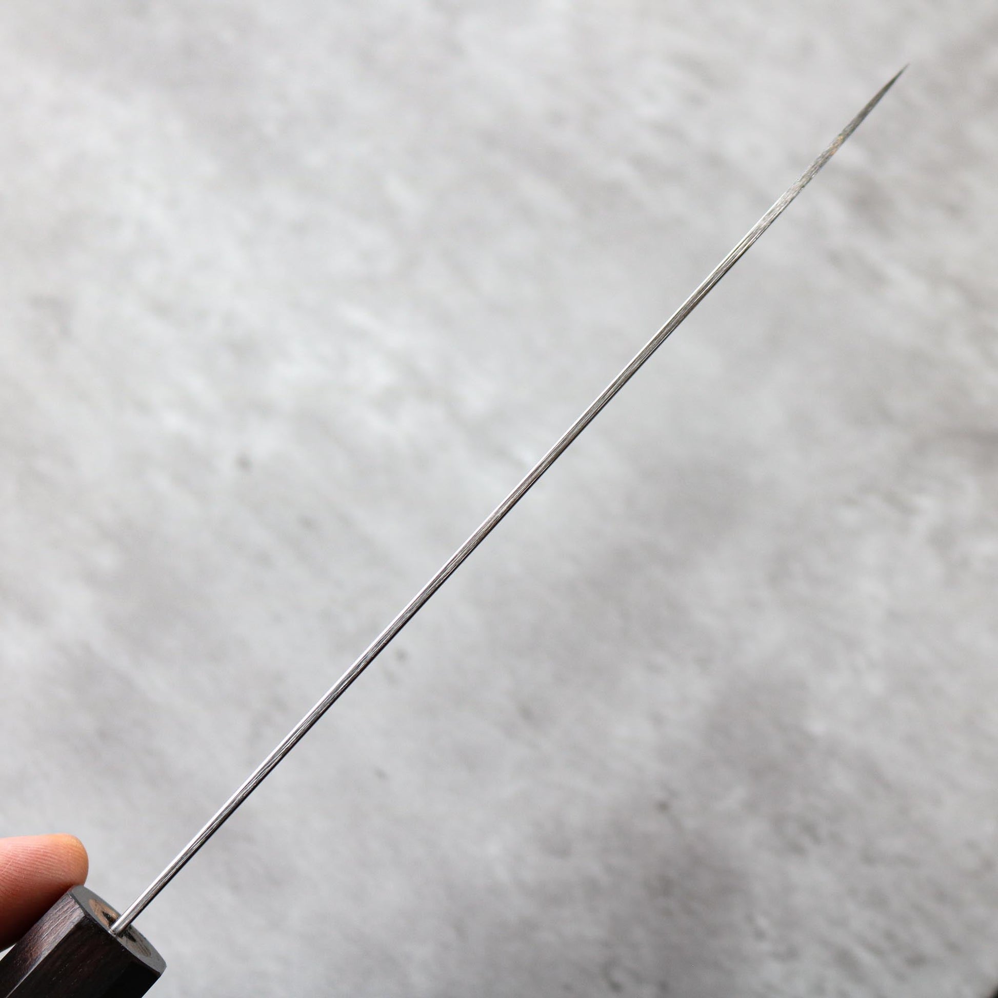 Santoku translates to three virtues. Meat, fish, and vegetables, or slicing, dicing, and chopping. No matter what way you look at it, it implies the versatility of the knife. While you sacrifice some of the slicing capability of a larger gyuto, don't be fooled by its size, the santoku can get 99% of your kitchen tasks done without breaking a sweat, which is probably why its the most popular shape in Japanese home kitchens.