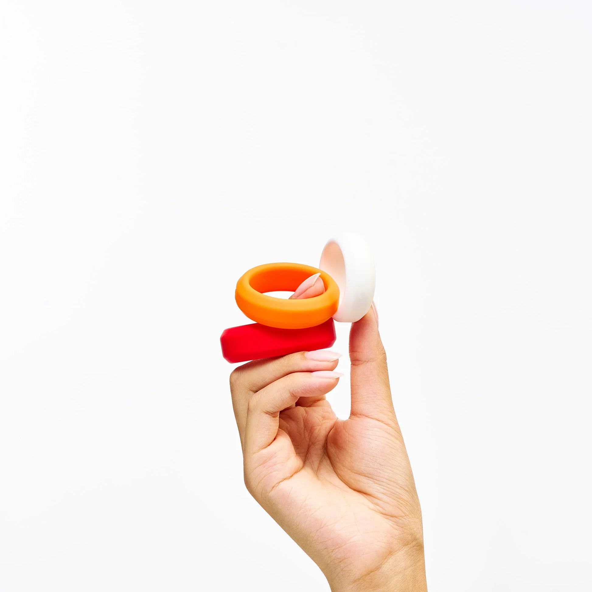 o is a curated set of three intimate rings designed to enhance sensation and support staying power. crafted from soft, body-safe silicone, each ring offers a different fit so you can find your rhythm and choose your hold.