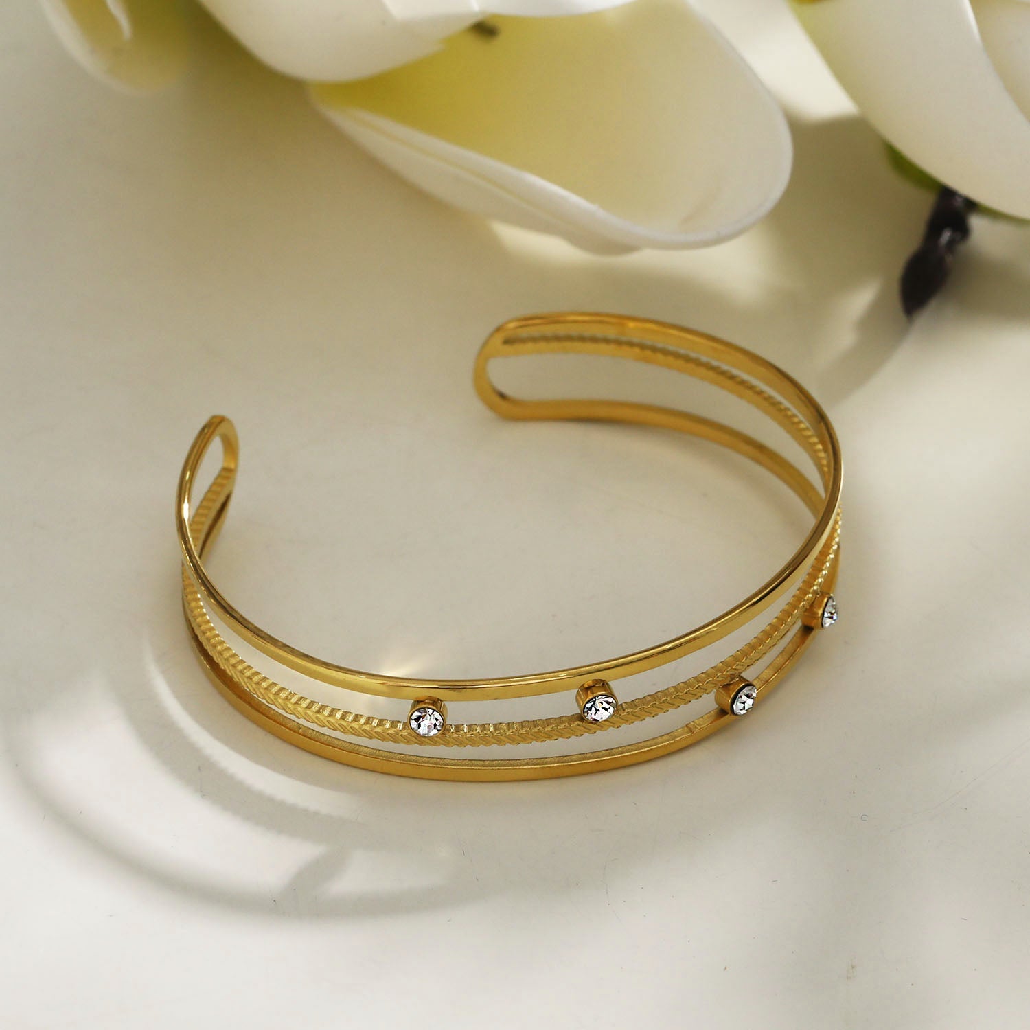 Style: LADARIA 221025 'Trio of Cuffs' Bracelet with Zirconia Highlights.