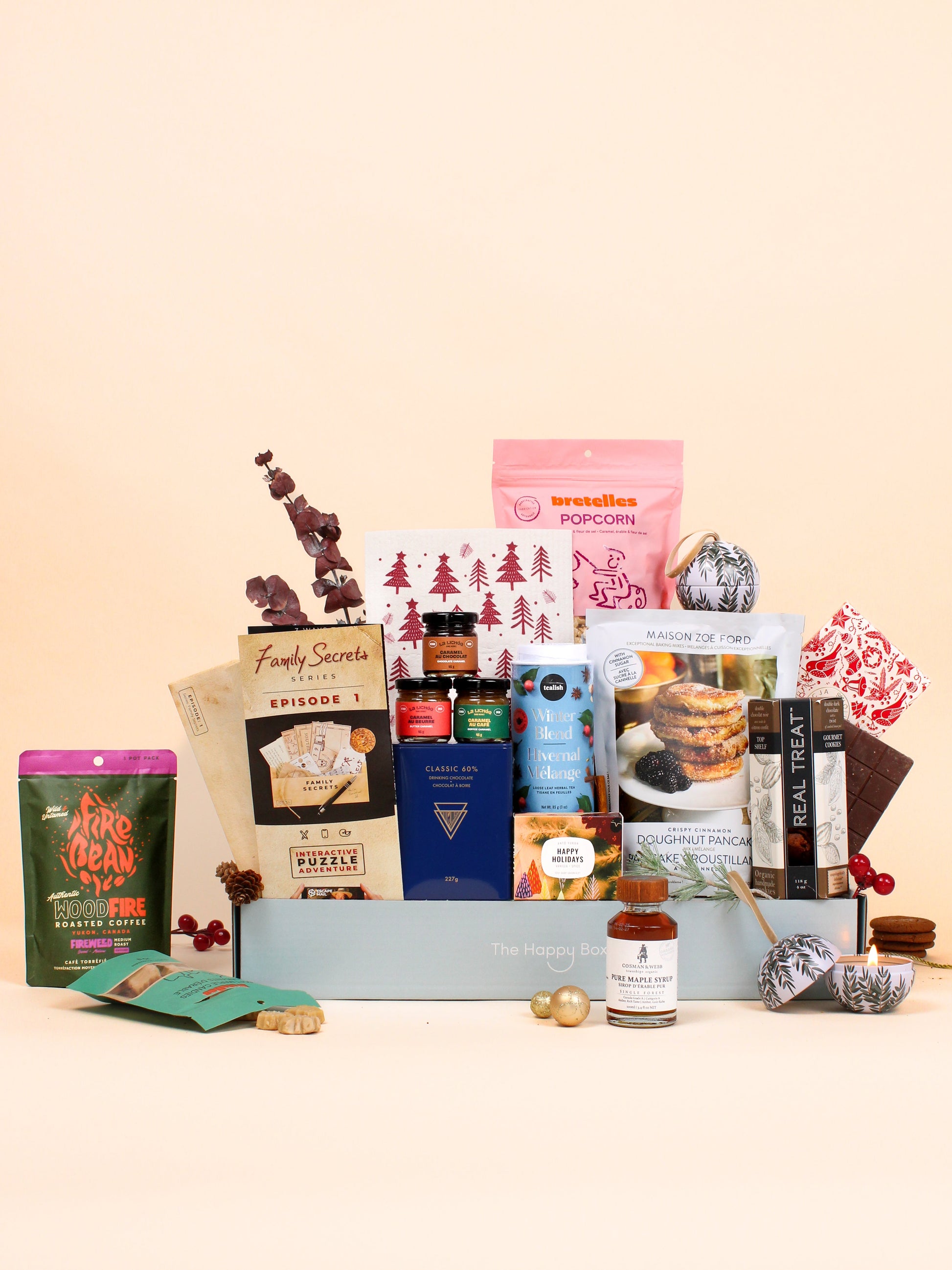Designed to bring everyone together, this gift box is filled with Canadian-made favourites for the whole family. Inside are pancake mix and maple syrup for festive breakfasts, hot chocolate and winter tea for cozy evenings, popcorn, cookies, sweet surprises, and a family game to spark laughter and connection. A joyful gift that makes gatherings brighter and perfect for creating new holiday traditions.