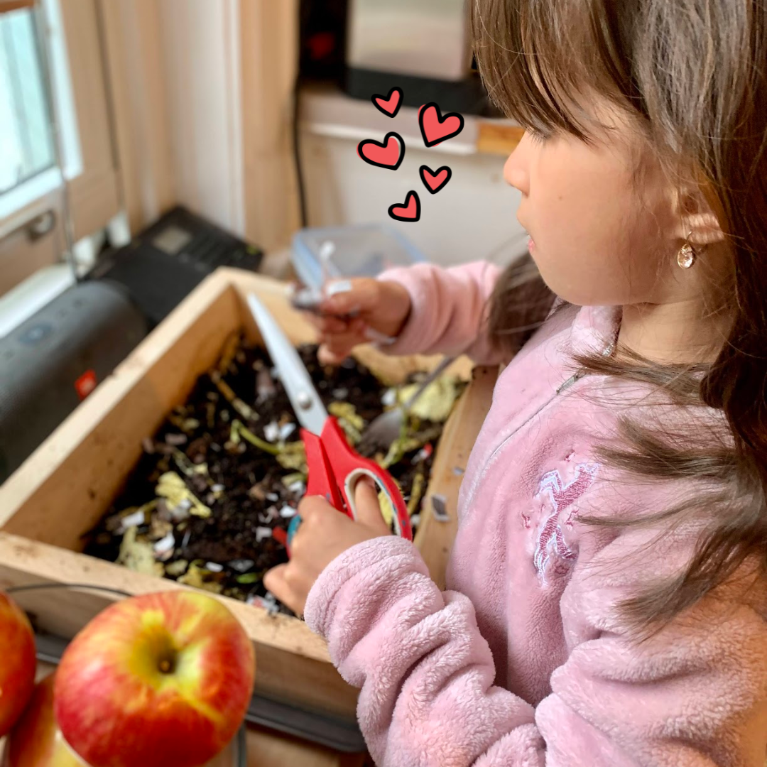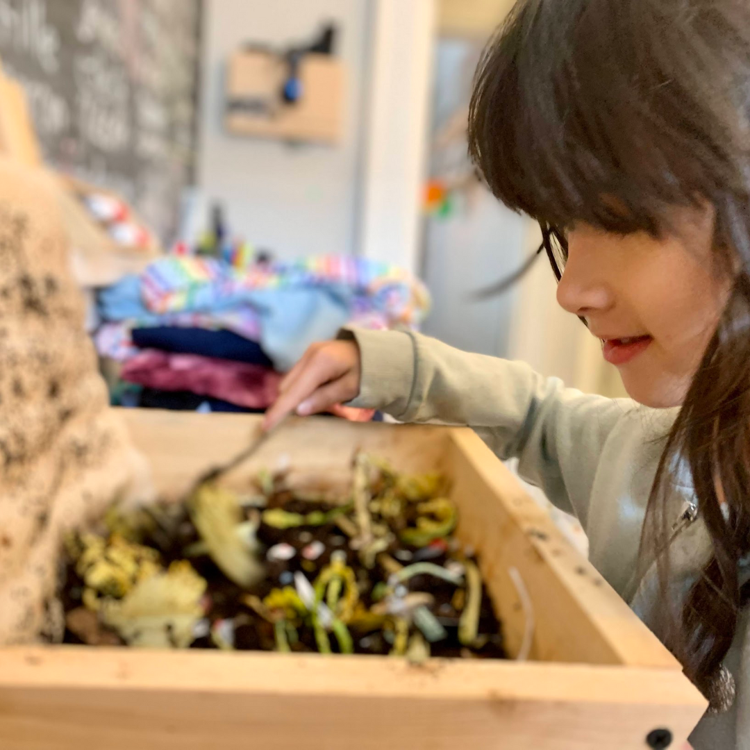 The studio is made up of two trays for vertical migration of worms, making harvesting the castings easy! When the worm poop is ready for harvest, kids can use the nutrient rich compost for planting projects indoors and out. The learning continues first hand while they experience the benefits of healthy chemical free fertilizer made from their food waste.