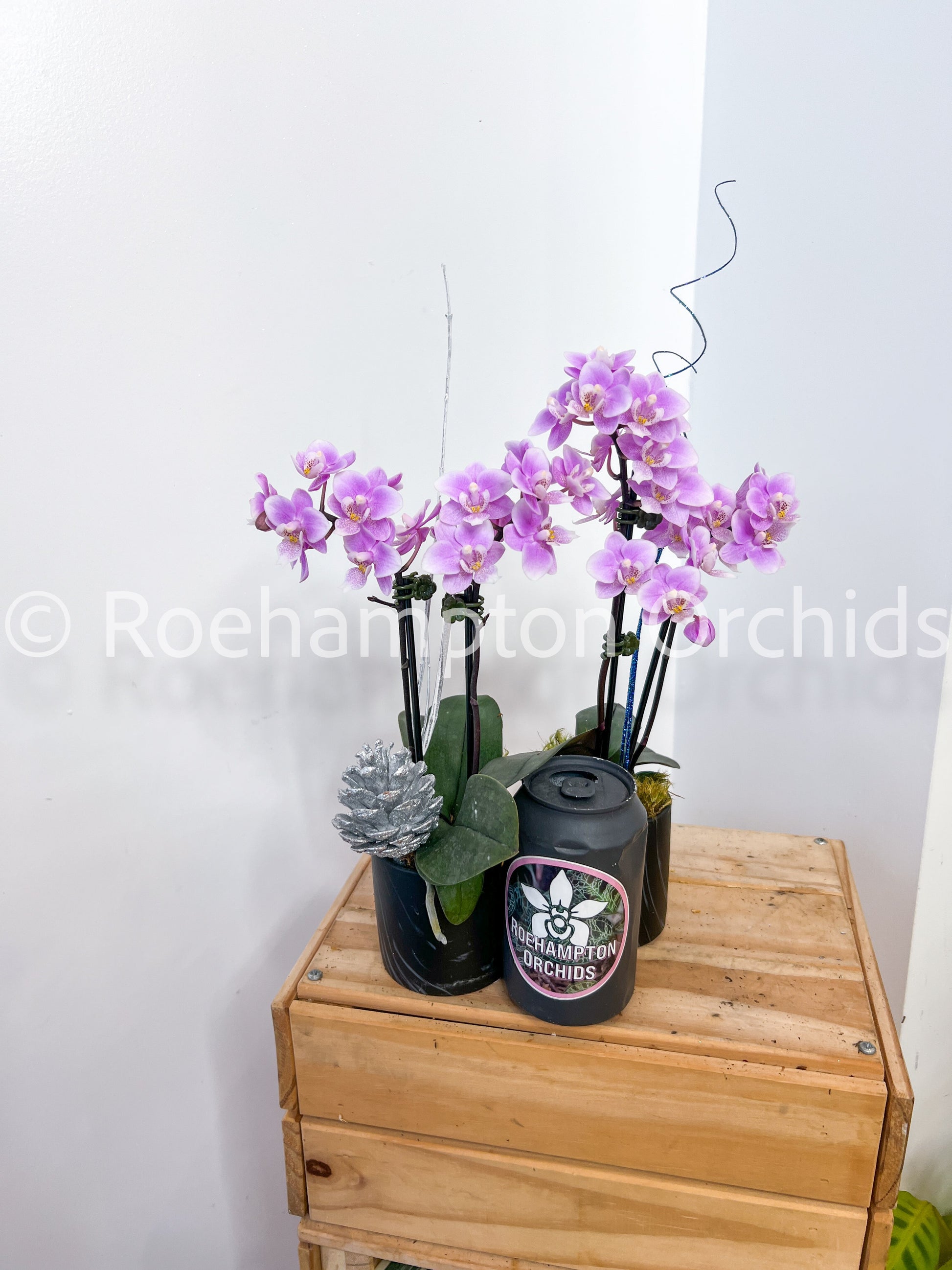 Luxuriously decorated phalaenopsis orchid in our elegant pot. Perfect gift to elevate your space.