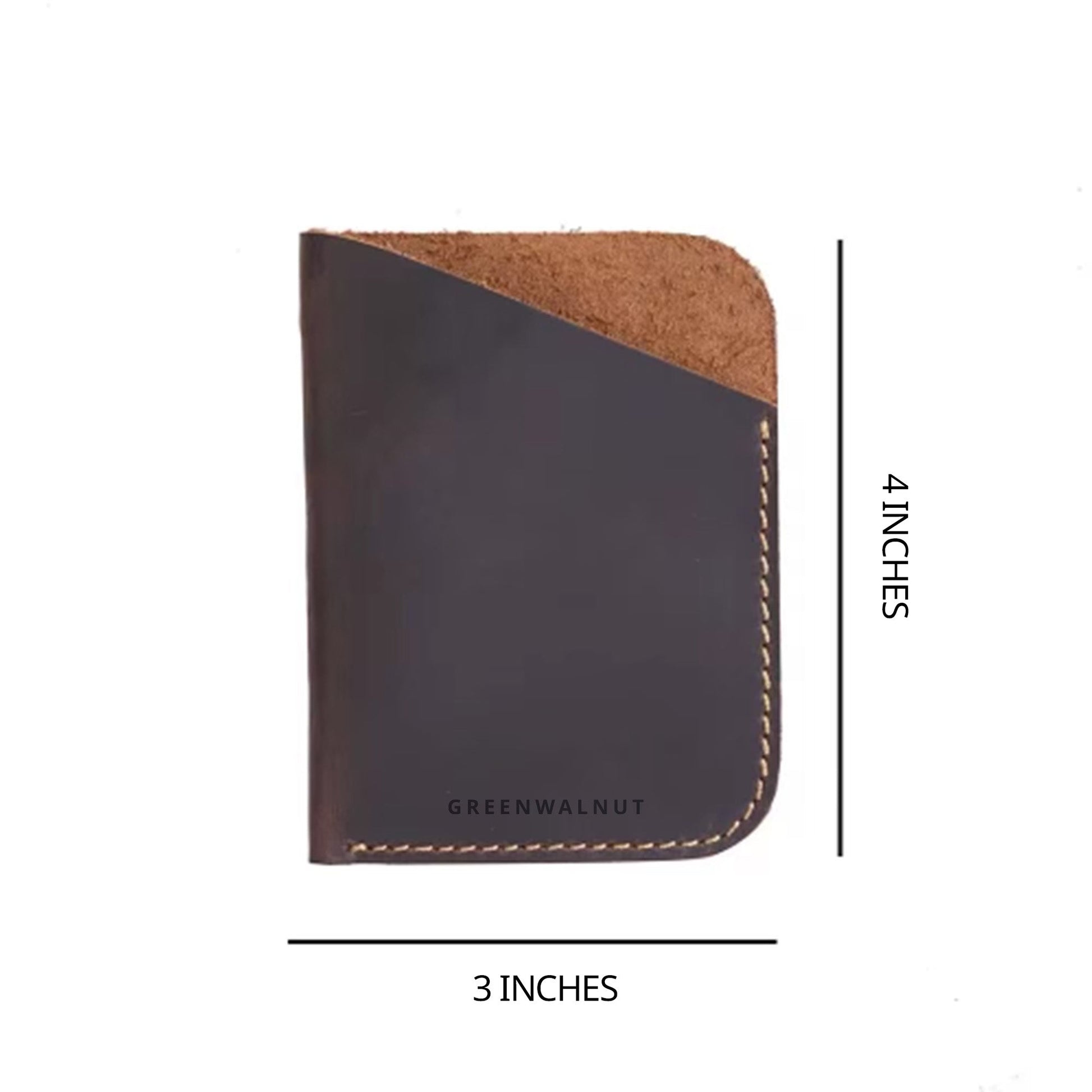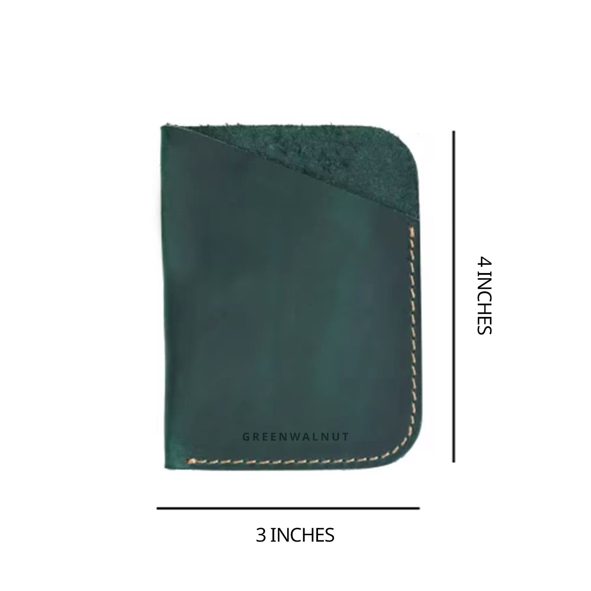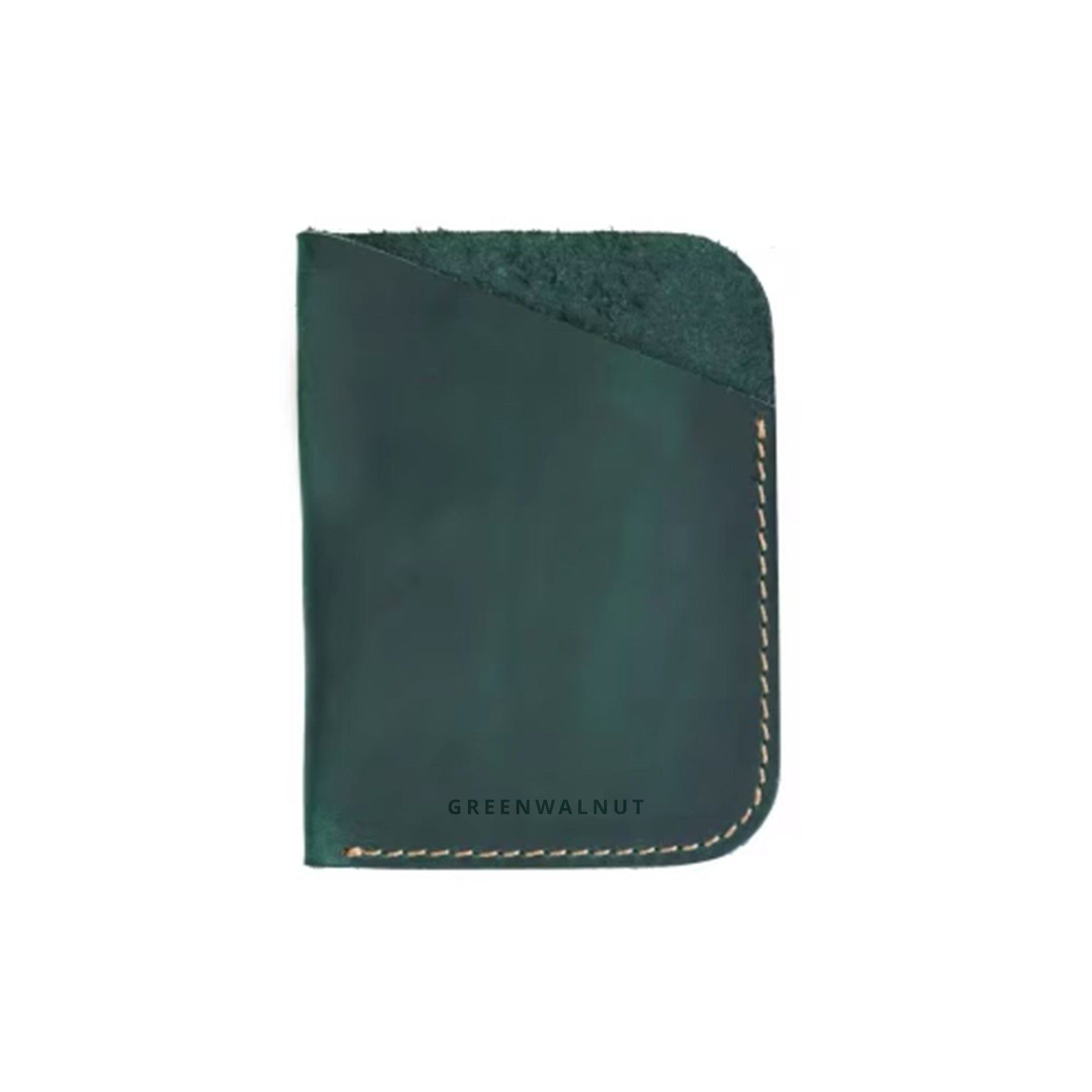 Greenwalnut's sleek and compact handmade leather wallet is designed for those who appreciate simplicity and elegance. Crafted from high-quality genuine leather, it features a single-pocket design that securely holds cash, cards, and small essentials without adding bulk. The minimalist construction ensures a lightweight yet durable feel, making it perfect for everyday carry.