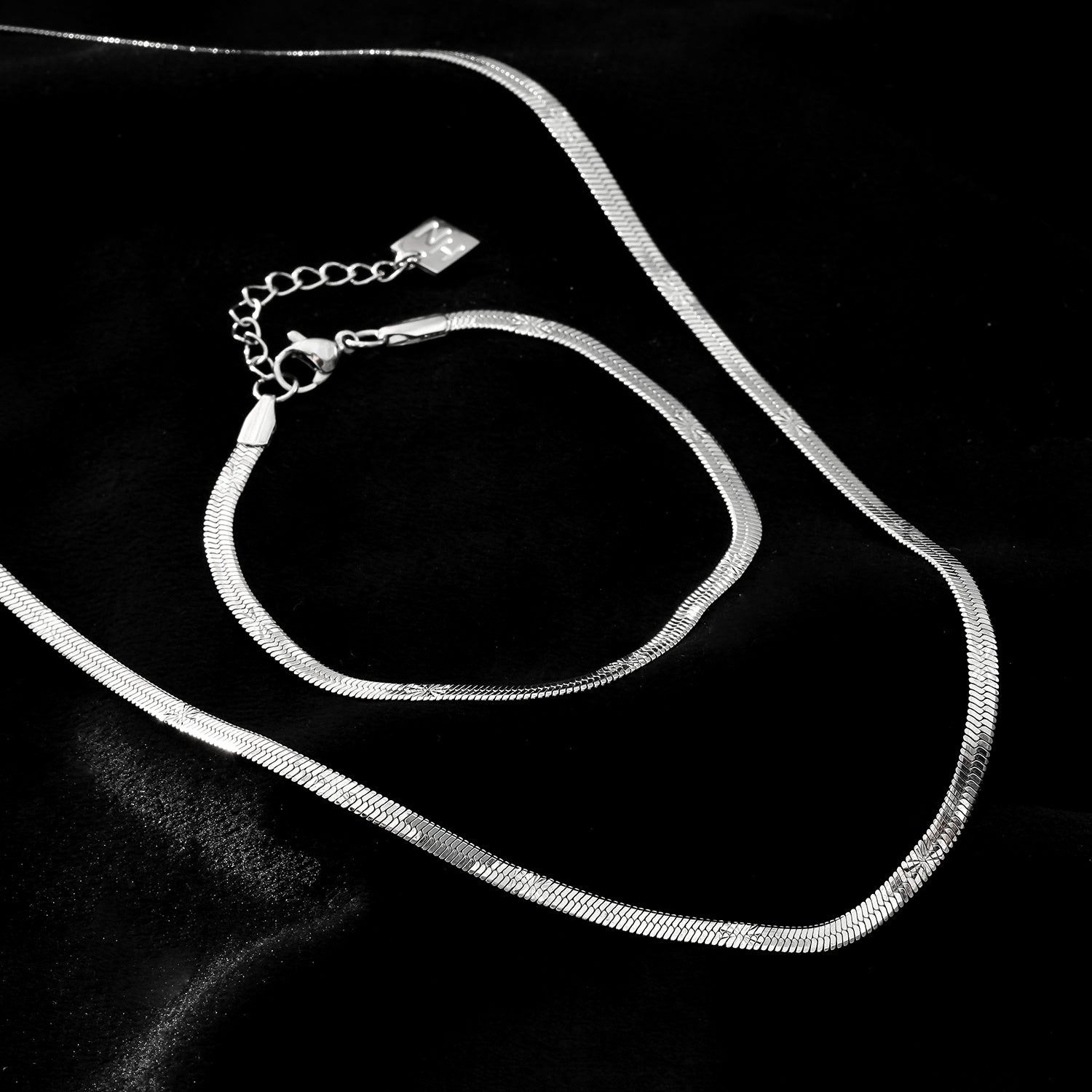 MUKER: Star Embossed Snake Skin Textured Silver Chain Bracelet