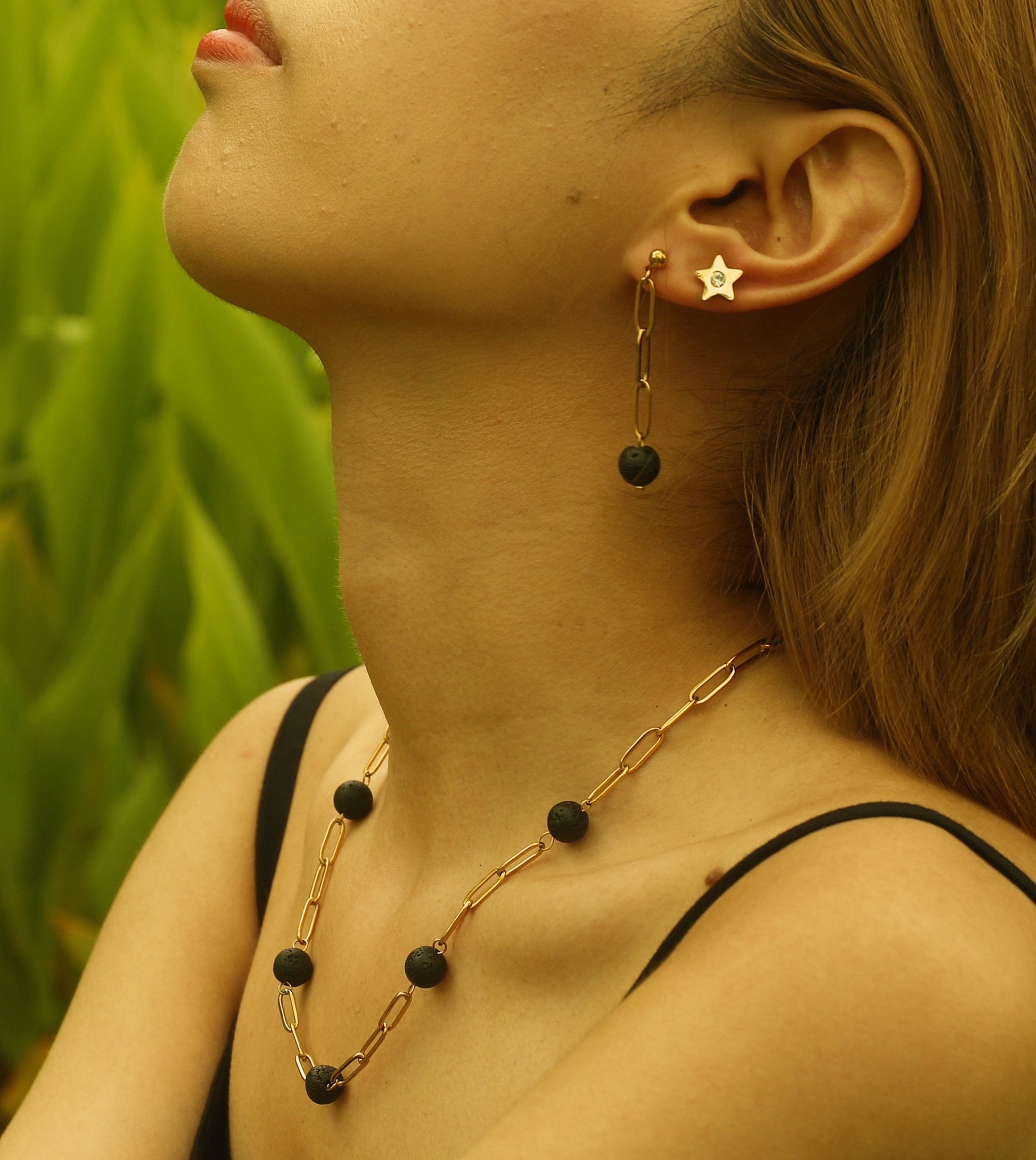 These natural stones are charcoal-black in colour, with a unique porous texture and have been used in jewellery making since ancient times.