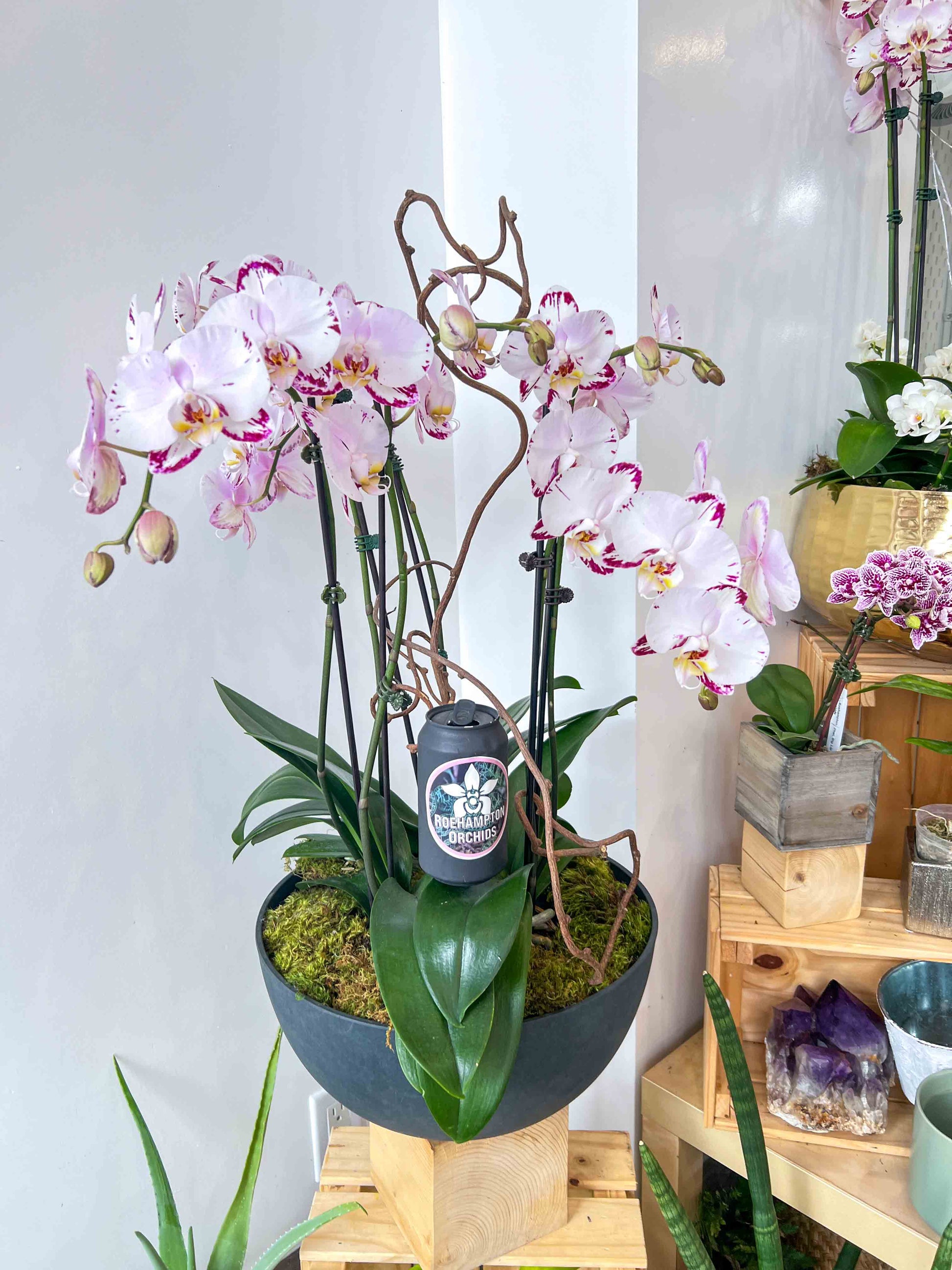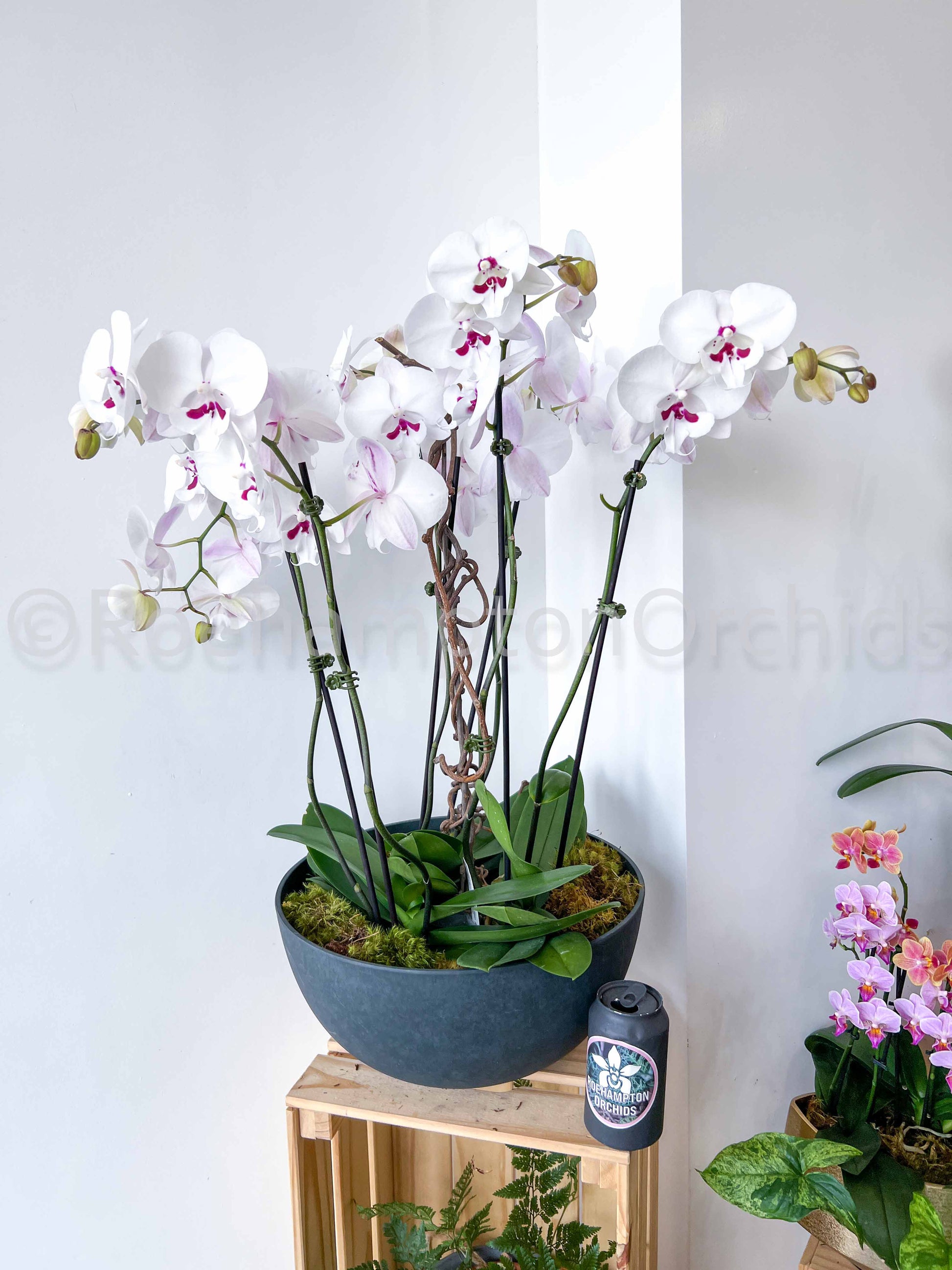 - Arrangement can also be done with other combination of orchids but recommend Phalaenopsis for longest lasting flowers. Message us bottom right for customization
