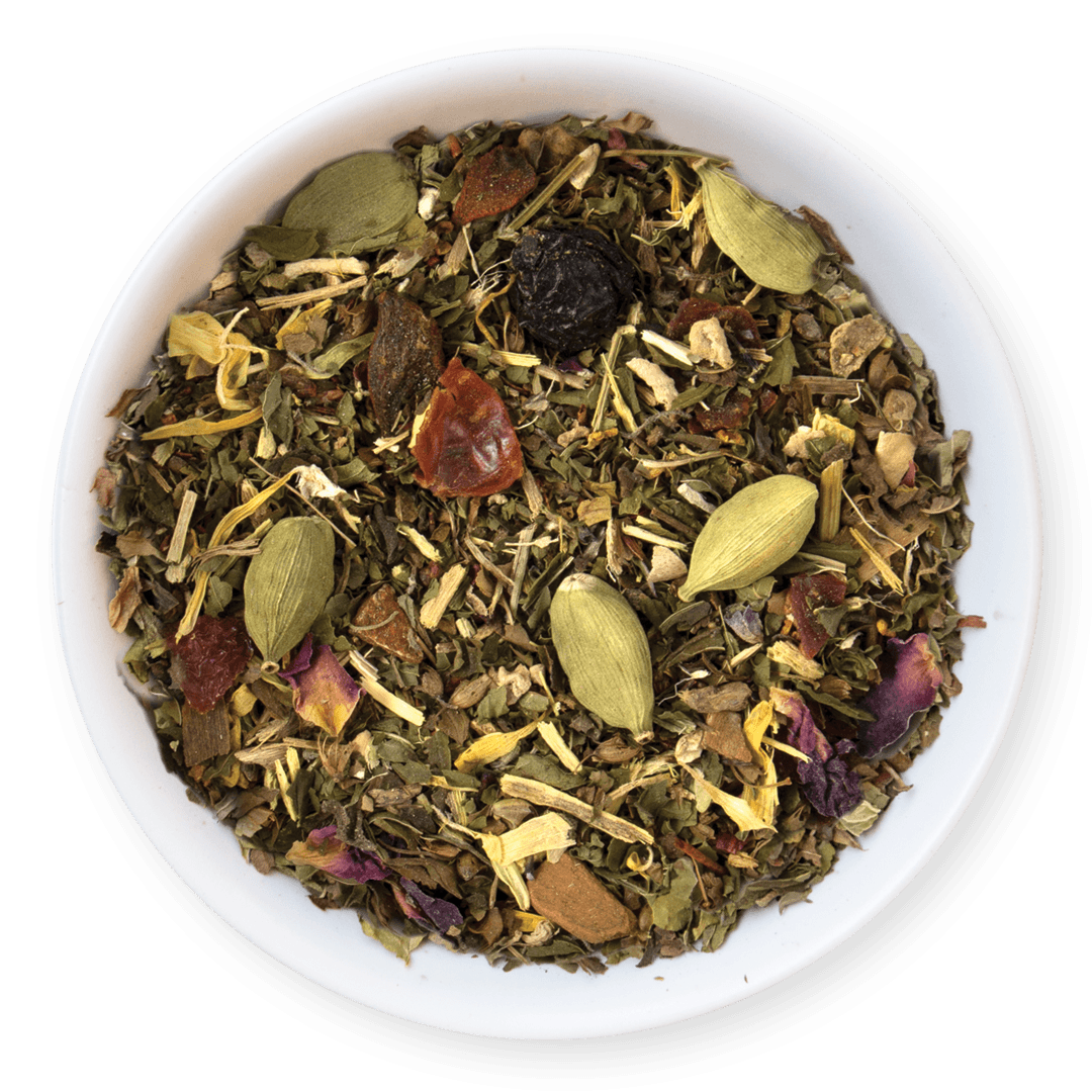 A beau-tea-ful way to wind down from the day. A delicious, evening naturally detoxifying tea blend with a calming combination of peppermint and spearmint to soothe, and a wholesome mix of ginger and cinnamon to tackle inflammation while tulsi helps calms the nervous system.Â