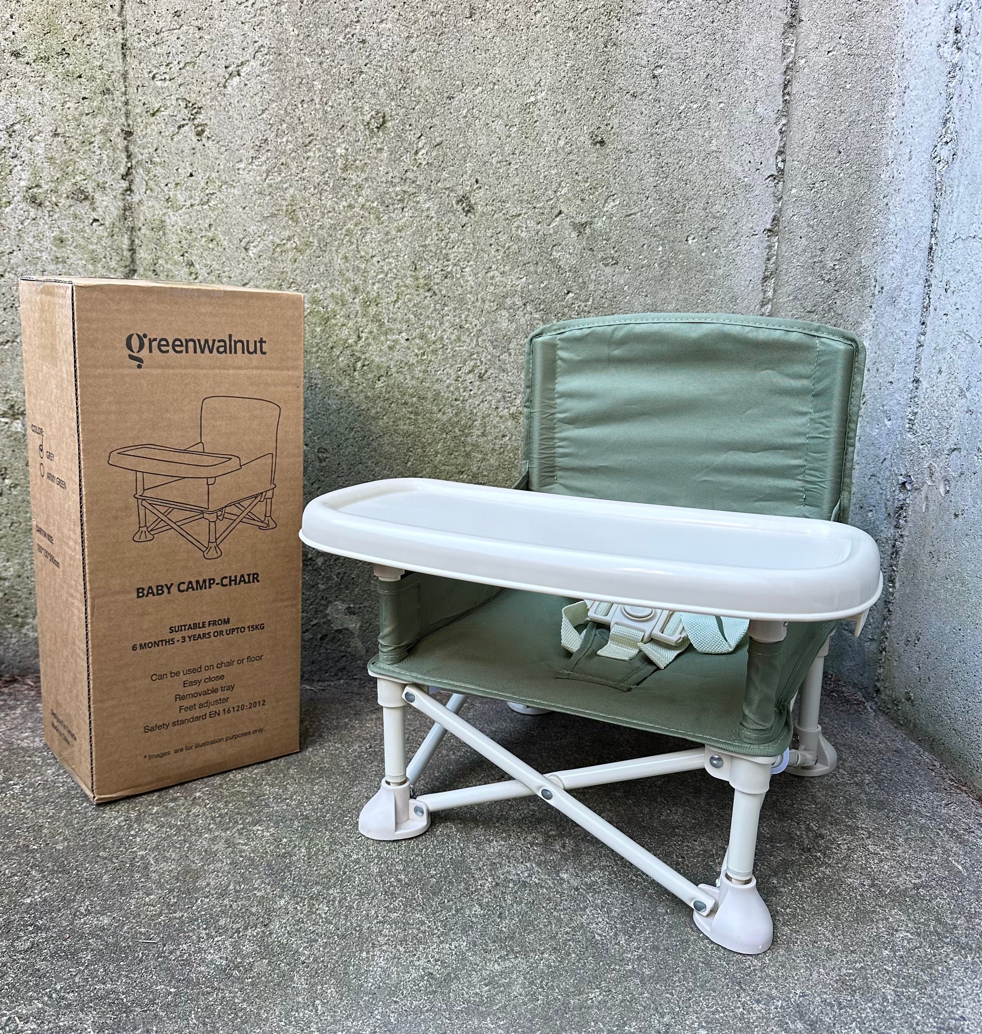 Portable Baby Chair | Camp Chair | Booster Seat With Removable Tray (Army Green)