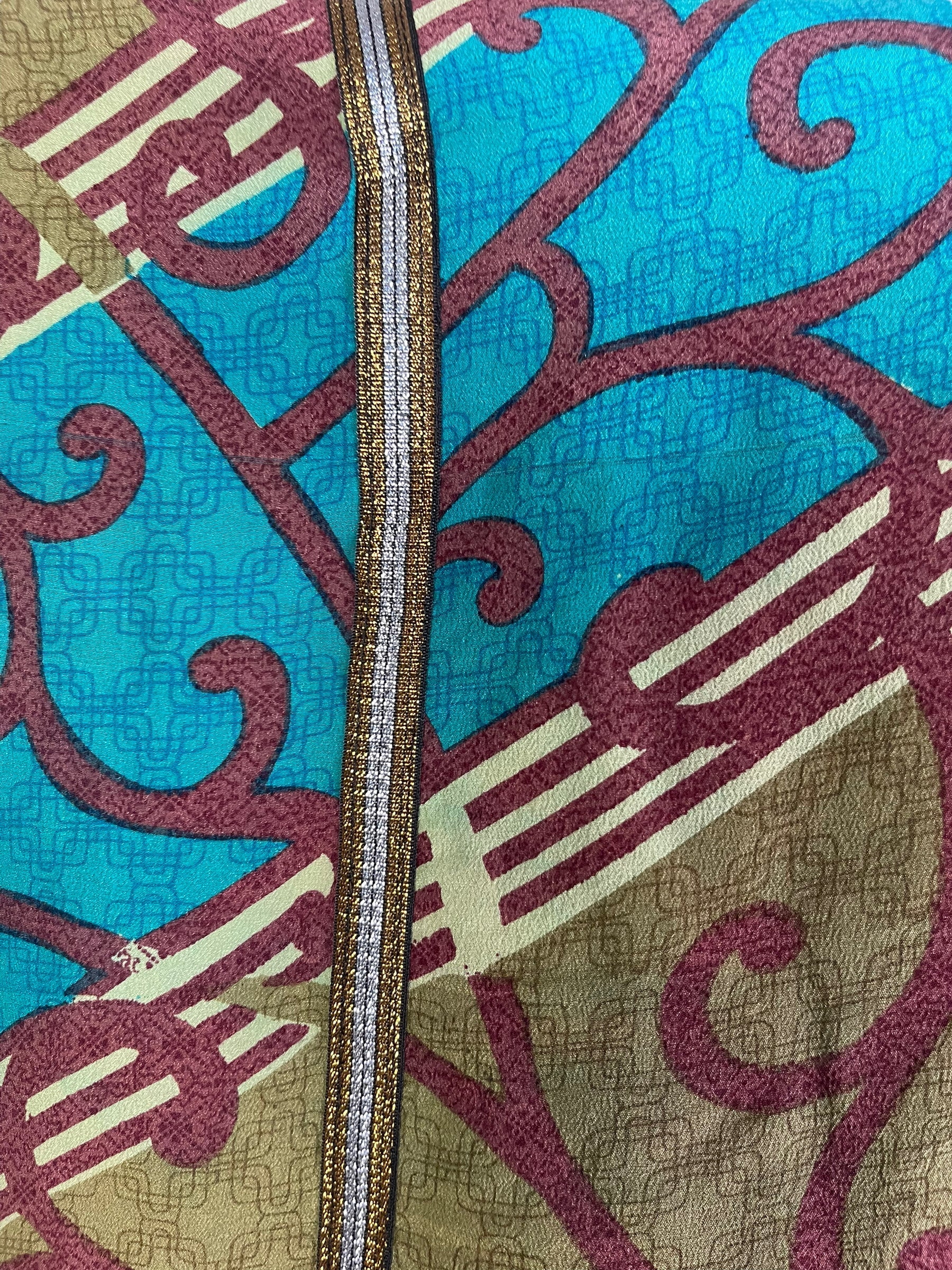 In Eastern philosophy, an Avatar is an incarnation that teaches how to evolve virtues of the past into the present. The Pure Upcycled Silk Avatar Collection is made from vintage pure silk saris, chosen and worn by women in the past to celebrate their lives.If you look very closely, you will see that the silks in this collection show some of the character of their previous incarnations through the appliqués that have been lovingly applied to bring new life to the fabric. This piece is a reminder that we are part of a collective journey to which we all add a little something.