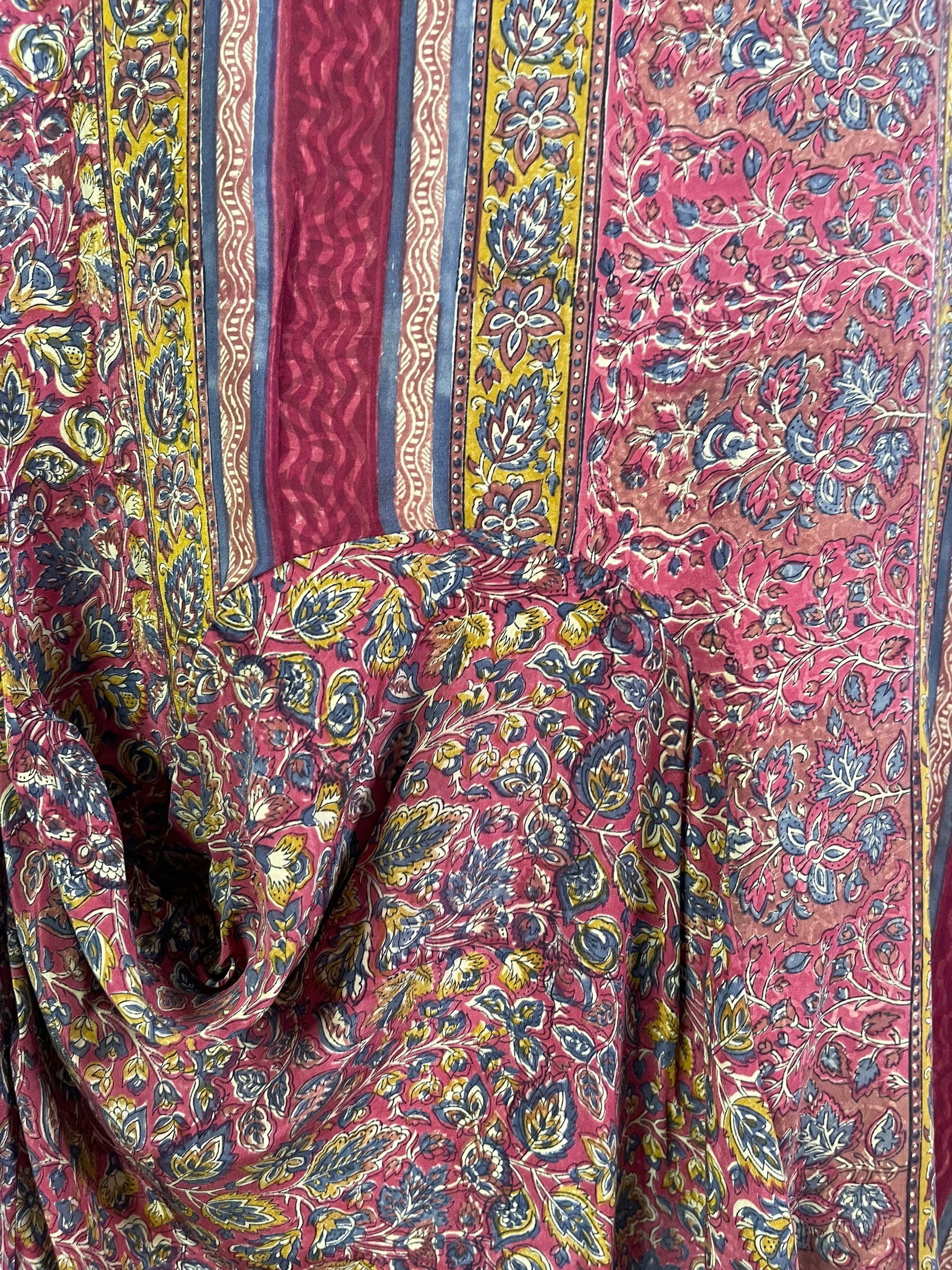 In Eastern philosophy, an Avatar is an incarnation that teaches how to evolve virtues of the past into the present. The Pure Upcycled Silk Avatar Collection is made from vintage pure silk saris, chosen and worn by women in the past to celebrate their lives.If you look very closely, you will see that the silks in this collection show some of the character of their previous incarnations through the appliqués that have been lovingly applied to bring new life to the fabric. This piece is a reminder that we are part of a collective journey to which we all add a little something.