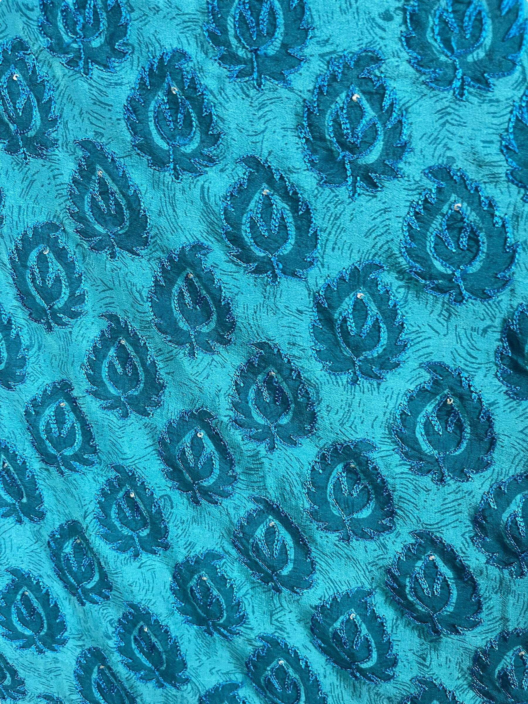 In Eastern philosophy, an Avatar is an incarnation that teaches how to evolve virtues of the past into the present. The Pure Upcycled Silk Avatar Collection is made from vintage pure silk saris, chosen and worn by women in the past to celebrate their lives.If you look very closely, you will see that the silks in this collection show some of the character of their previous incarnations through the appliqués that have been lovingly applied to bring new life to the fabric. This piece is a reminder that we are part of a collective journey to which we all add a little something.