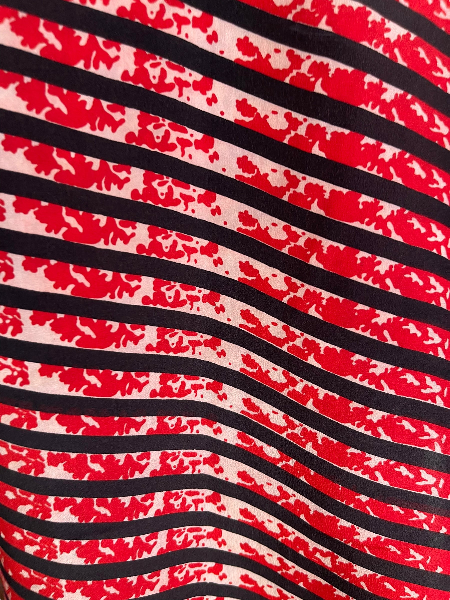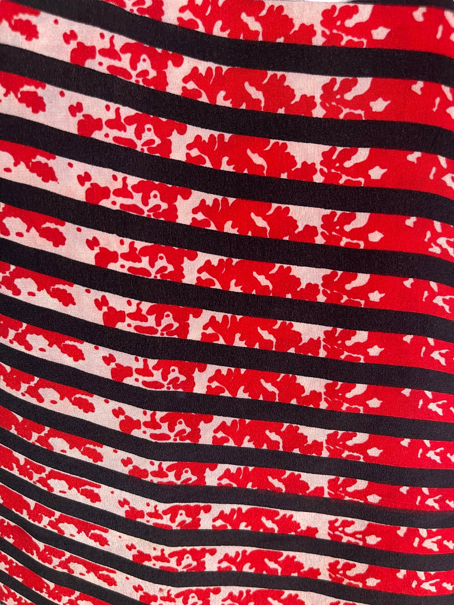If you look very closely, you will see that the silks in this collection show some of the character of their previous incarnations through the appliqués that have been lovingly applied to bring new life to the fabric. This piece is a reminder that we are part of a collective journey to which we all add a little something.