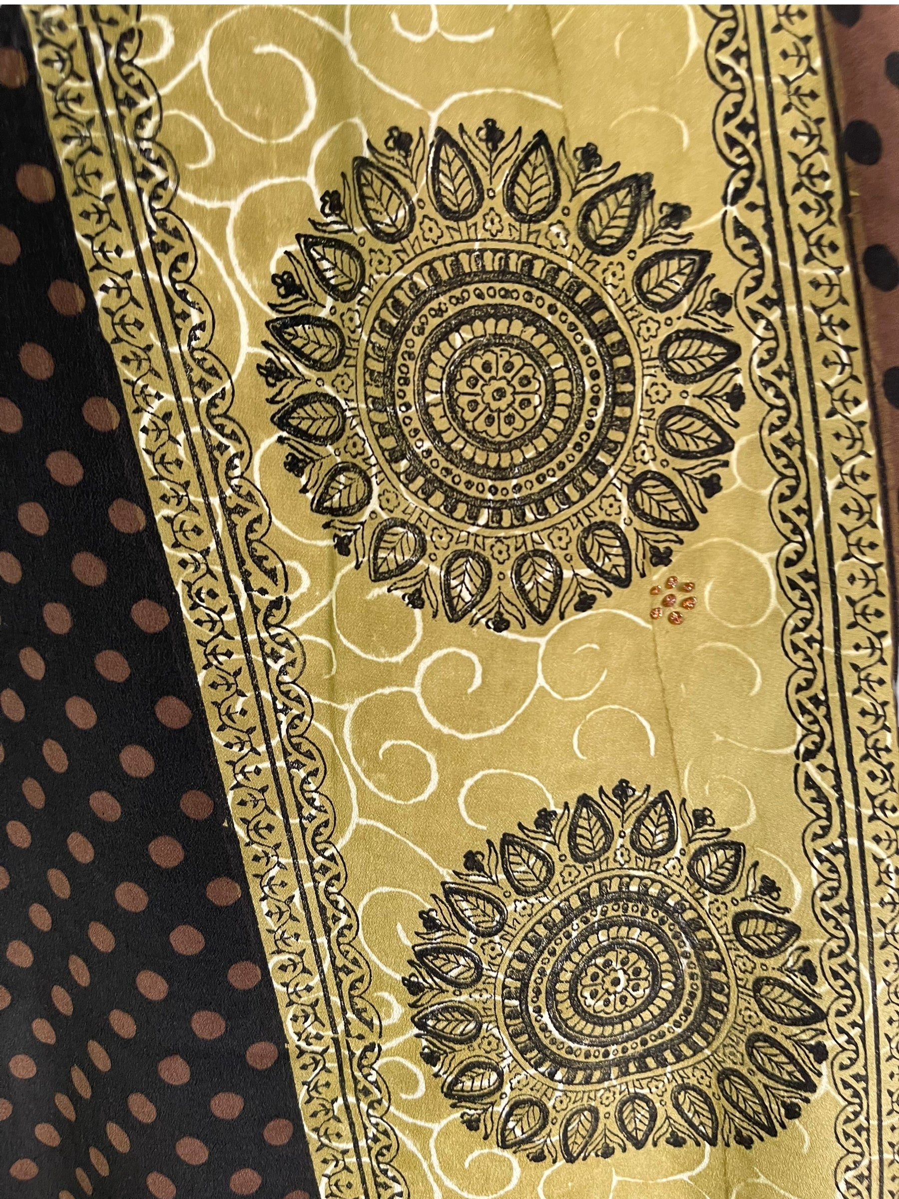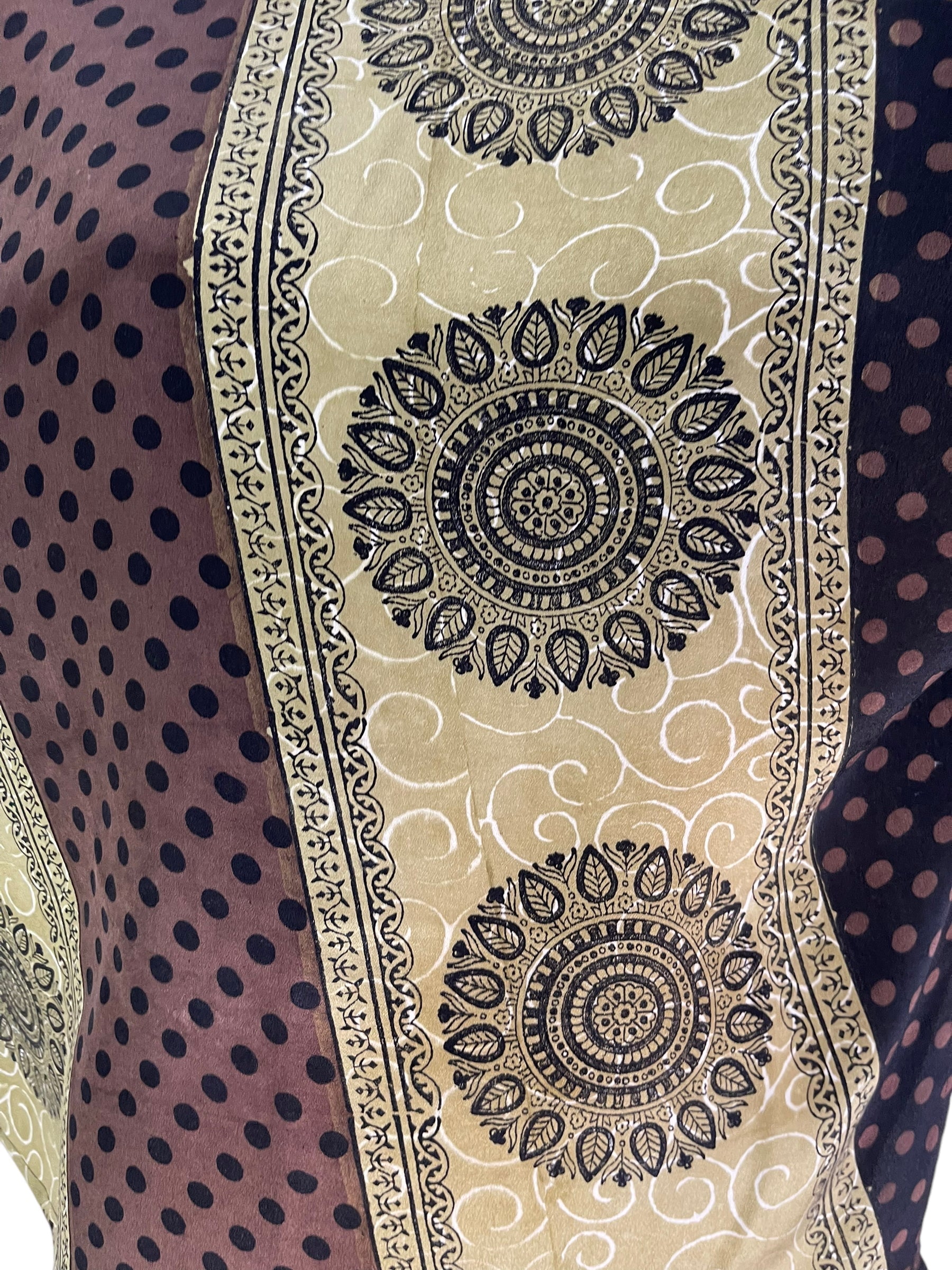 In Eastern philosophy, an Avatar is an incarnation that teaches how to evolve virtues of the past into the present. The Pure Upcycled Silk Avatar Collection is made from vintage pure silk saris, chosen and worn by women in the past to celebrate their lives.If you look very closely, you will see that the silks in this collection show some of the character of their previous incarnations through the appliqués that have been lovingly applied to bring new life to the fabric. This piece is a reminder that we are part of a collective journey to which we all add a little something.
