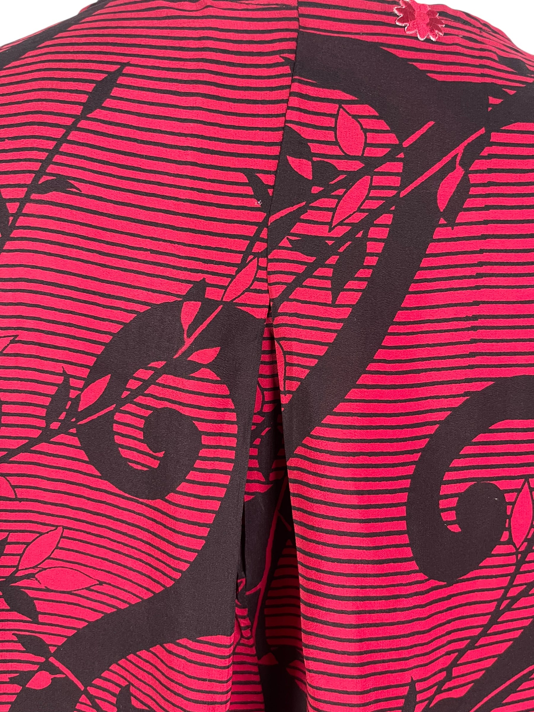 In Eastern philosophy, an Avatar is an incarnation that teaches how to evolve virtues of the past into the present. The Pure Upcycled Silk Avatar Collection is made from vintage pure silk saris, chosen and worn by women in the past to celebrate their lives.If you look very closely, you will see that the silks in this collection show some of the character of their previous incarnations through the appliqués that have been lovingly applied to bring new life to the fabric. This piece is a reminder that we are part of a collective journey to which we all add a little something.