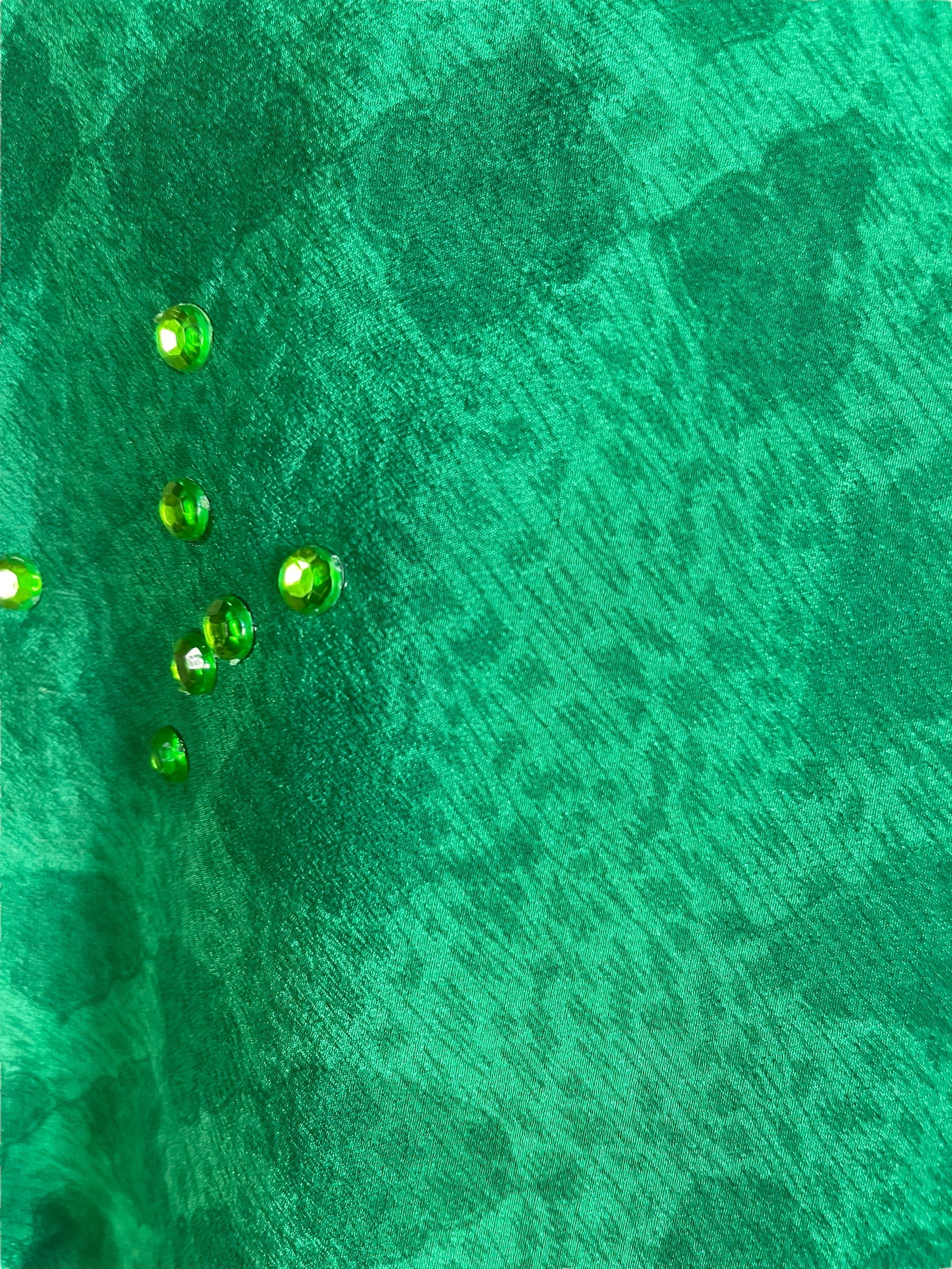 If you look very closely, you will see that the silks in this collection show some of the character of their previous incarnations through the appliqués that have been lovingly applied to bring new life to the fabric. This piece is a reminder that we are part of a collective journey to which we all add a little something.