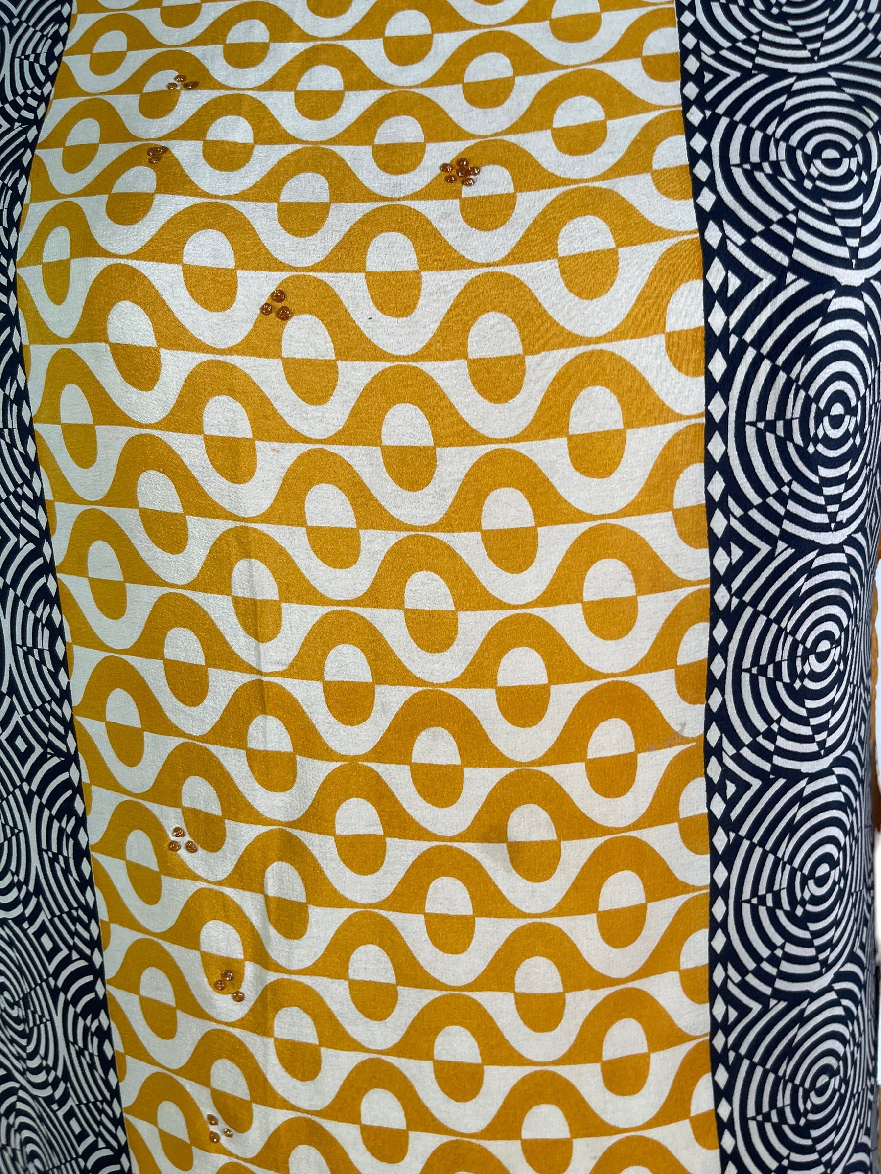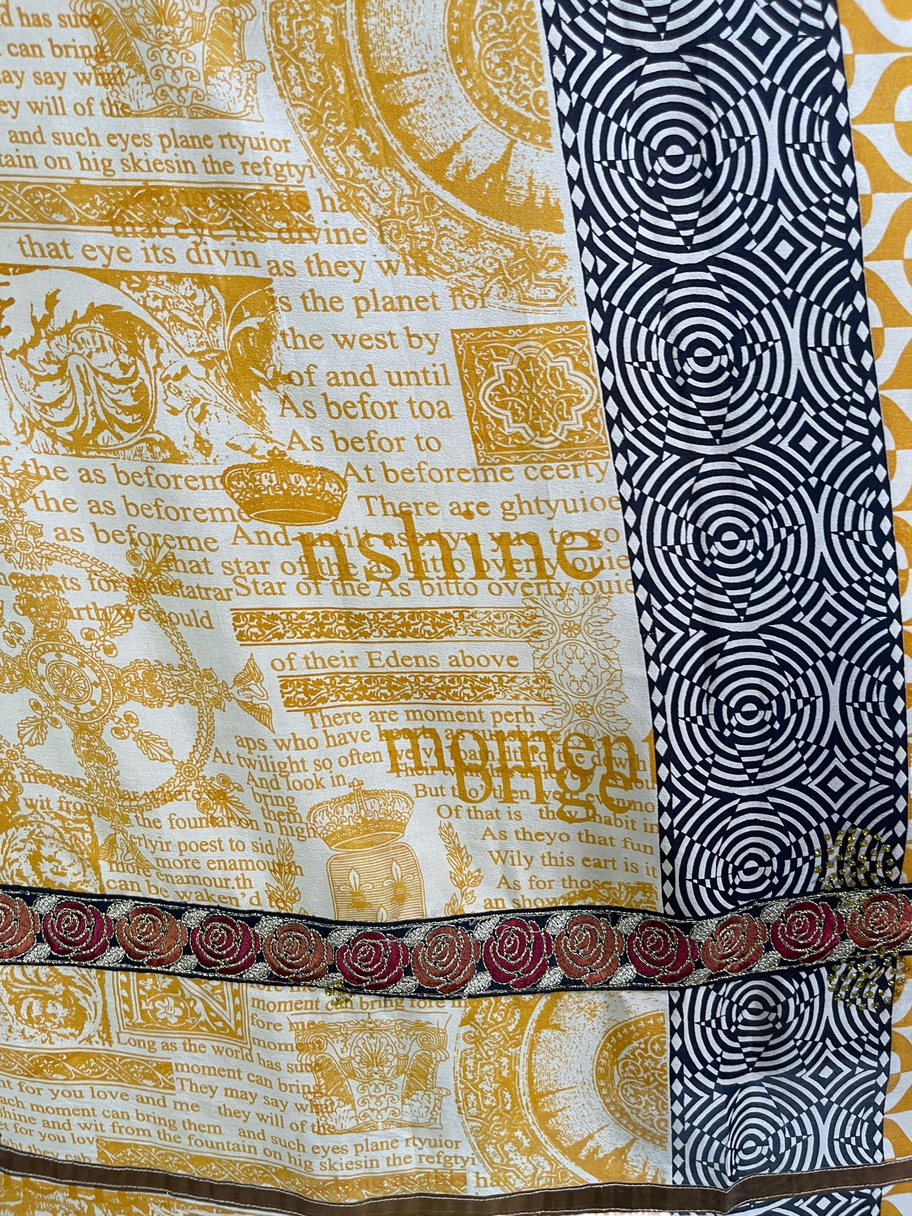 In Eastern philosophy, an Avatar is an incarnation that teaches how to evolve virtues of the past into the present. The Pure Upcycled Silk Avatar Collection is made from vintage pure silk saris, chosen and worn by women in the past to celebrate their lives.If you look very closely, you will see that the silks in this collection show some of the character of their previous incarnations through the appliqués that have been lovingly applied to bring new life to the fabric. This piece is a reminder that we are part of a collective journey to which we all add a little something.
