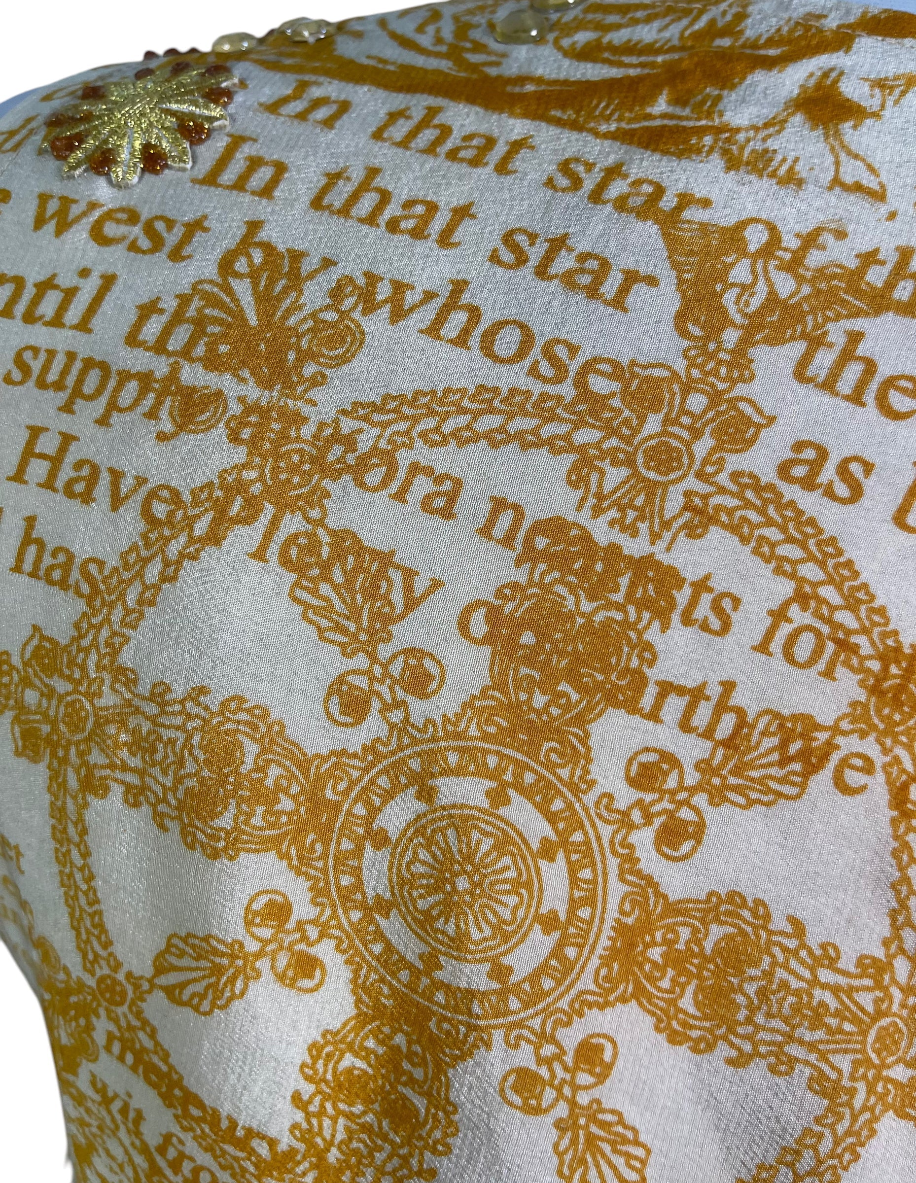 If you look very closely, you will see that the silks in this collection show some of the character of their previous incarnations through the appliqués that have been lovingly applied to bring new life to the fabric. This piece is a reminder that we are part of a collective journey to which we all add a little something.