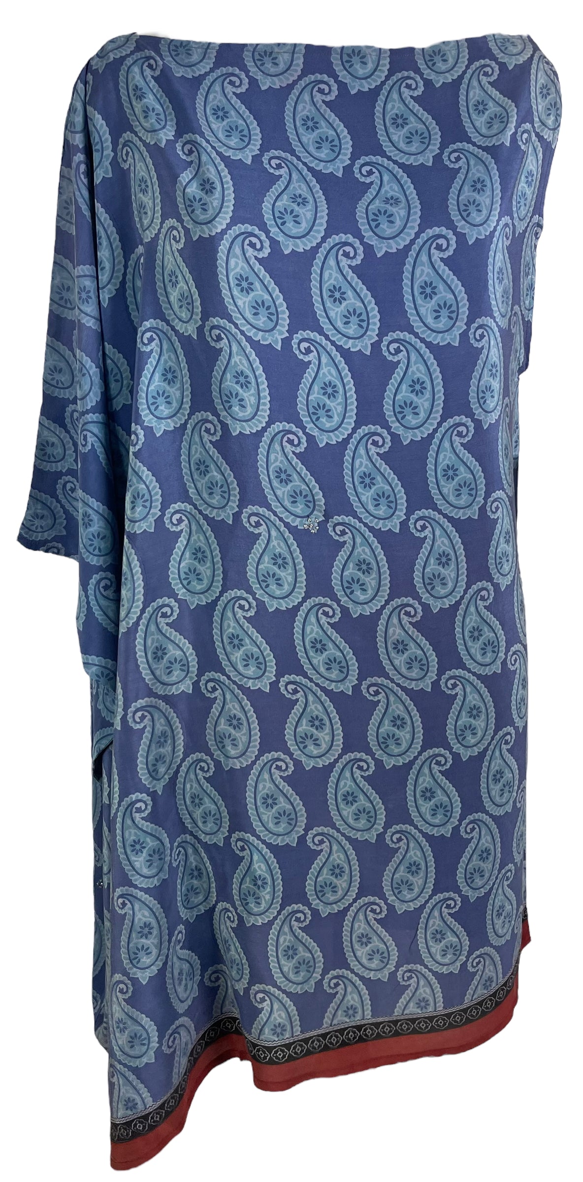 In Eastern philosophy, an Avatar is an incarnation that teaches how to evolve virtues of the past into the present. The Pure Upcycled Silk Avatar Collection is made from vintage pure silk saris, chosen and worn by women in the past to celebrate their lives.If you look very closely, you will see that the silks in this collection show some of the character of their previous incarnations through the appliqués that have been lovingly applied to bring new life to the fabric. This piece is a reminder that we are part of a collective journey to which we all add a little something.