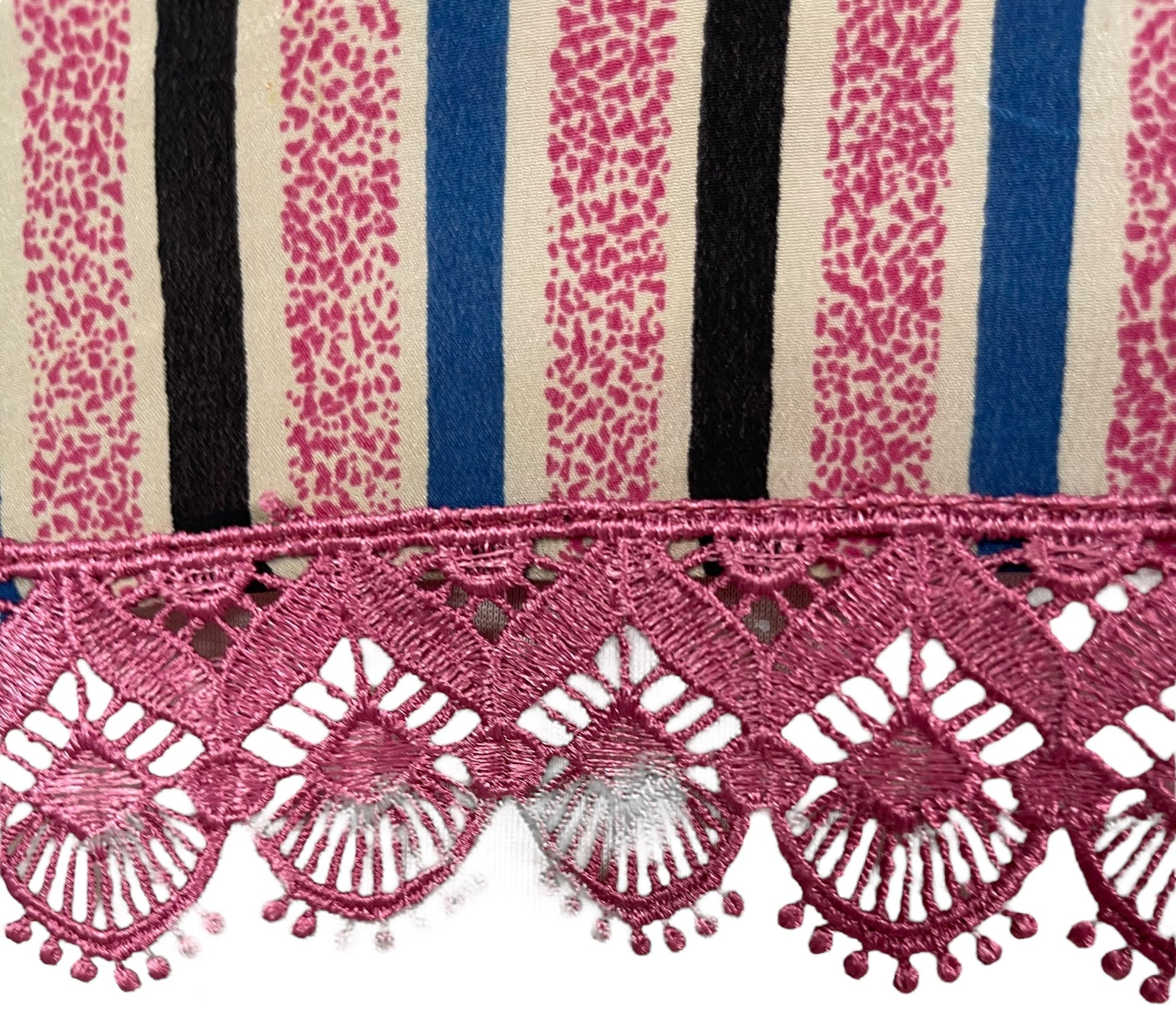 In Eastern philosophy, an Avatar is an incarnation that teaches how to evolve virtues of the past into the present. The Pure Upcycled Silk Avatar Collection is made from vintage pure silk saris, chosen and worn by women in the past to celebrate their lives.If you look very closely, you will see that the silks in this collection show some of the character of their previous incarnations through the appliqués that have been lovingly applied to bring new life to the fabric. This piece is a reminder that we are part of a collective journey to which we all add a little something.