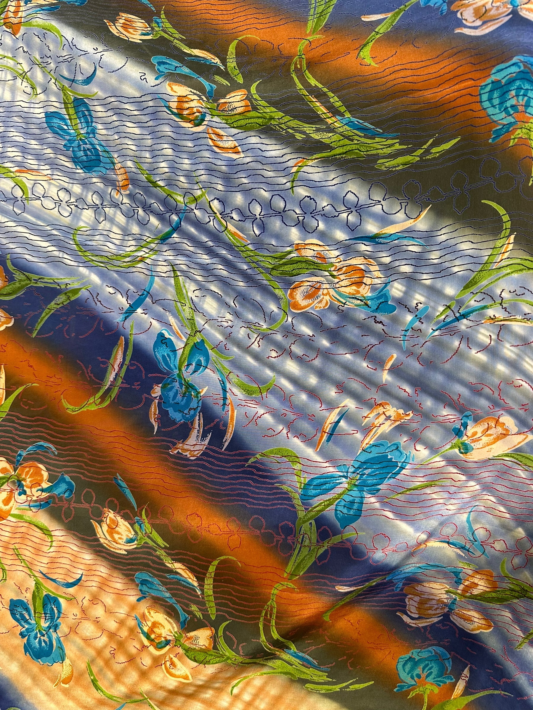 In Eastern philosophy, an Avatar is an incarnation that teaches how to evolve virtues of the past into the present. The Pure Upcycled Silk Avatar Collection is made from vintage pure silk saris, chosen and worn by women in the past to celebrate their lives.If you look very closely, you will see that the silks in this collection show some of the character of their previous incarnations through the appliqués that have been lovingly applied to bring new life to the fabric. This piece is a reminder that we are part of a collective journey to which we all add a little something.