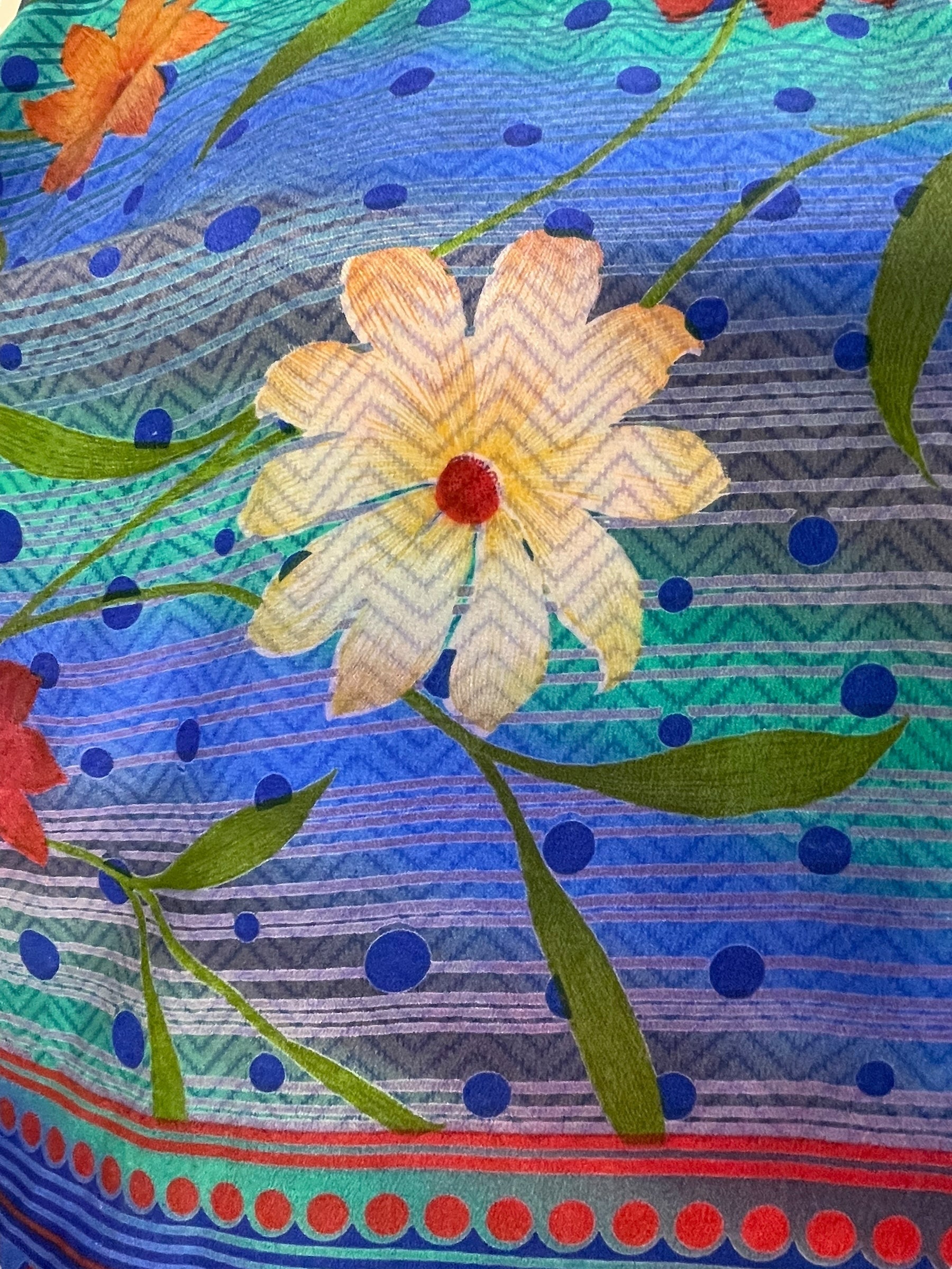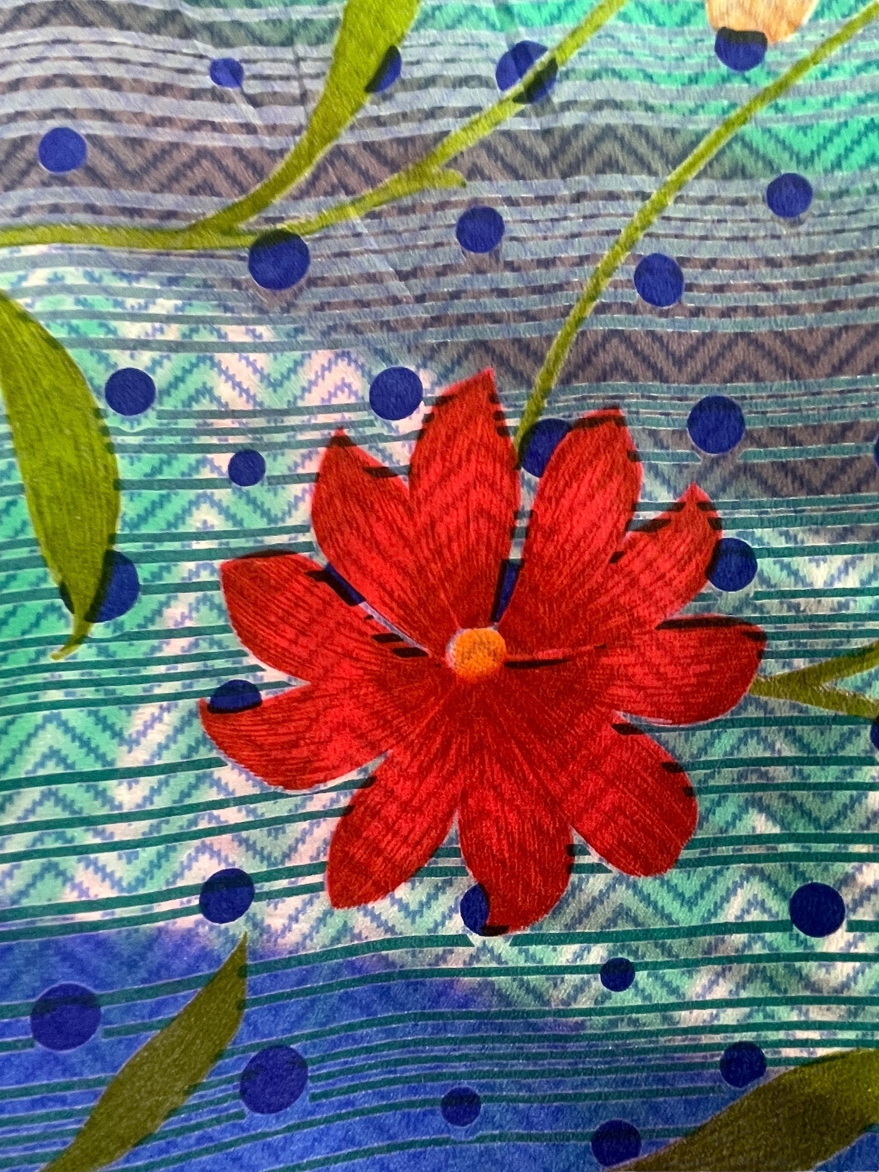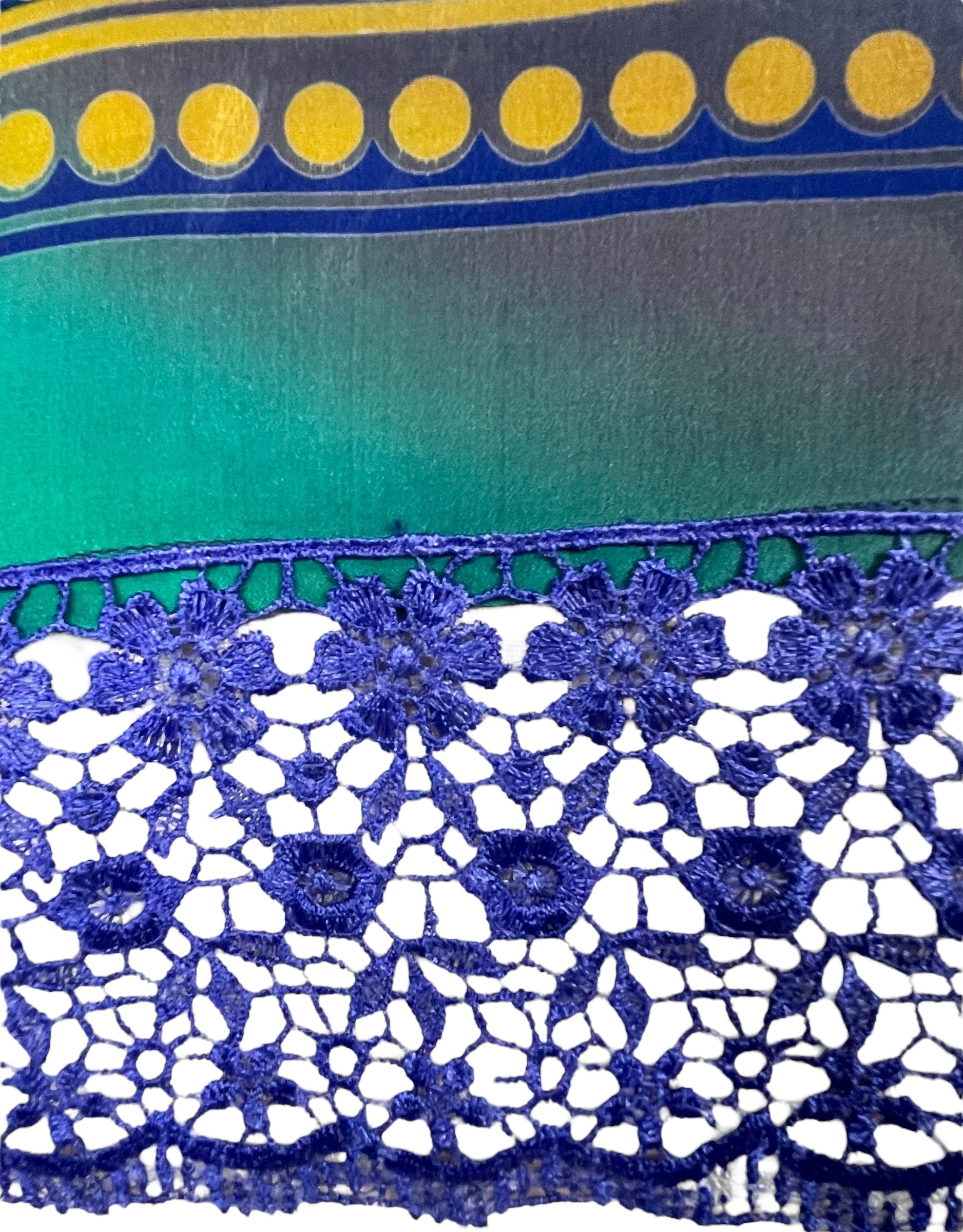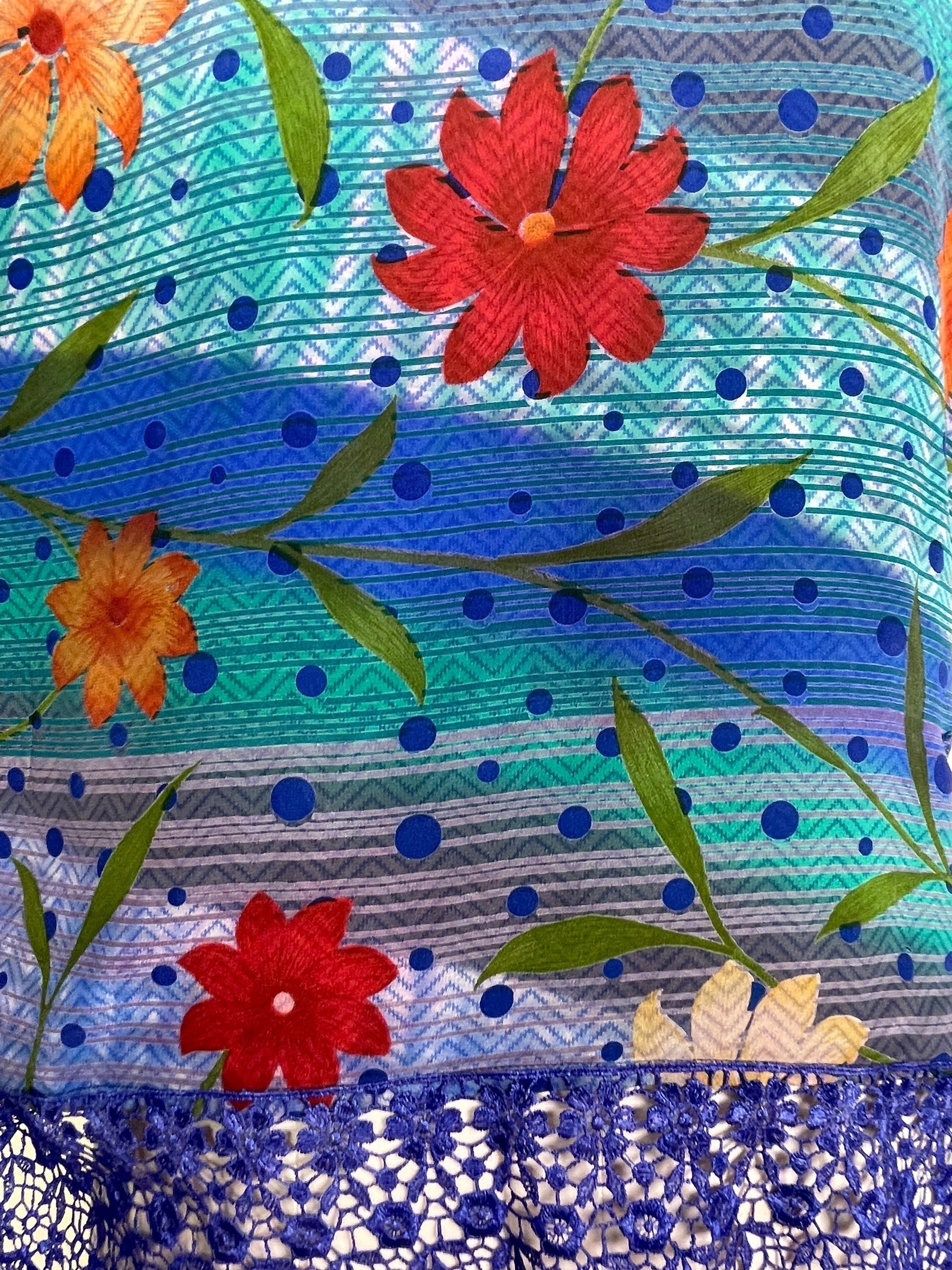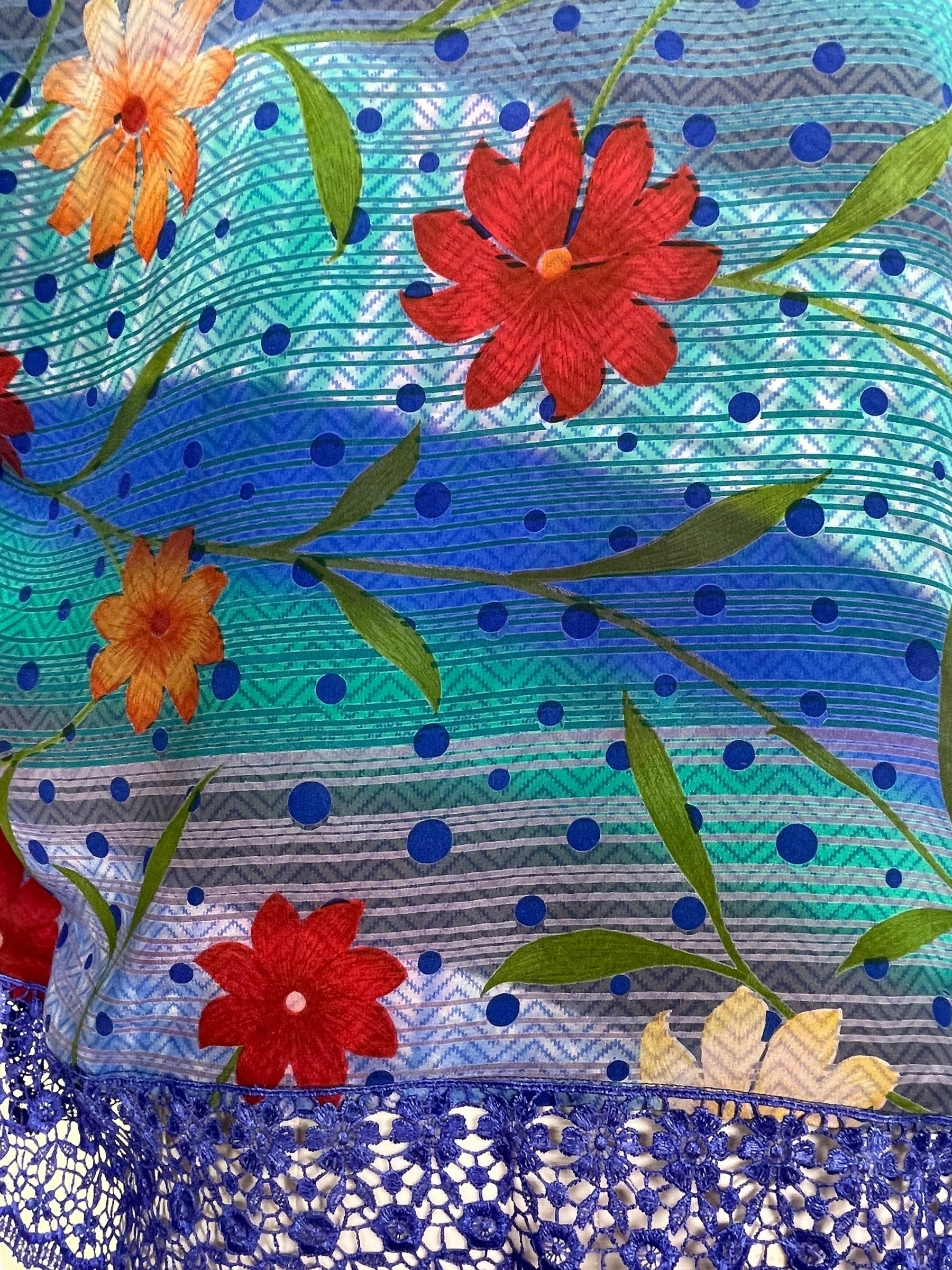 If you look very closely, you will see that the silks in this collection show some of the character of their previous incarnations through the appliqués that have been lovingly applied to bring new life to the fabric. This piece is a reminder that we are part of a collective journey to which we all add a little something.