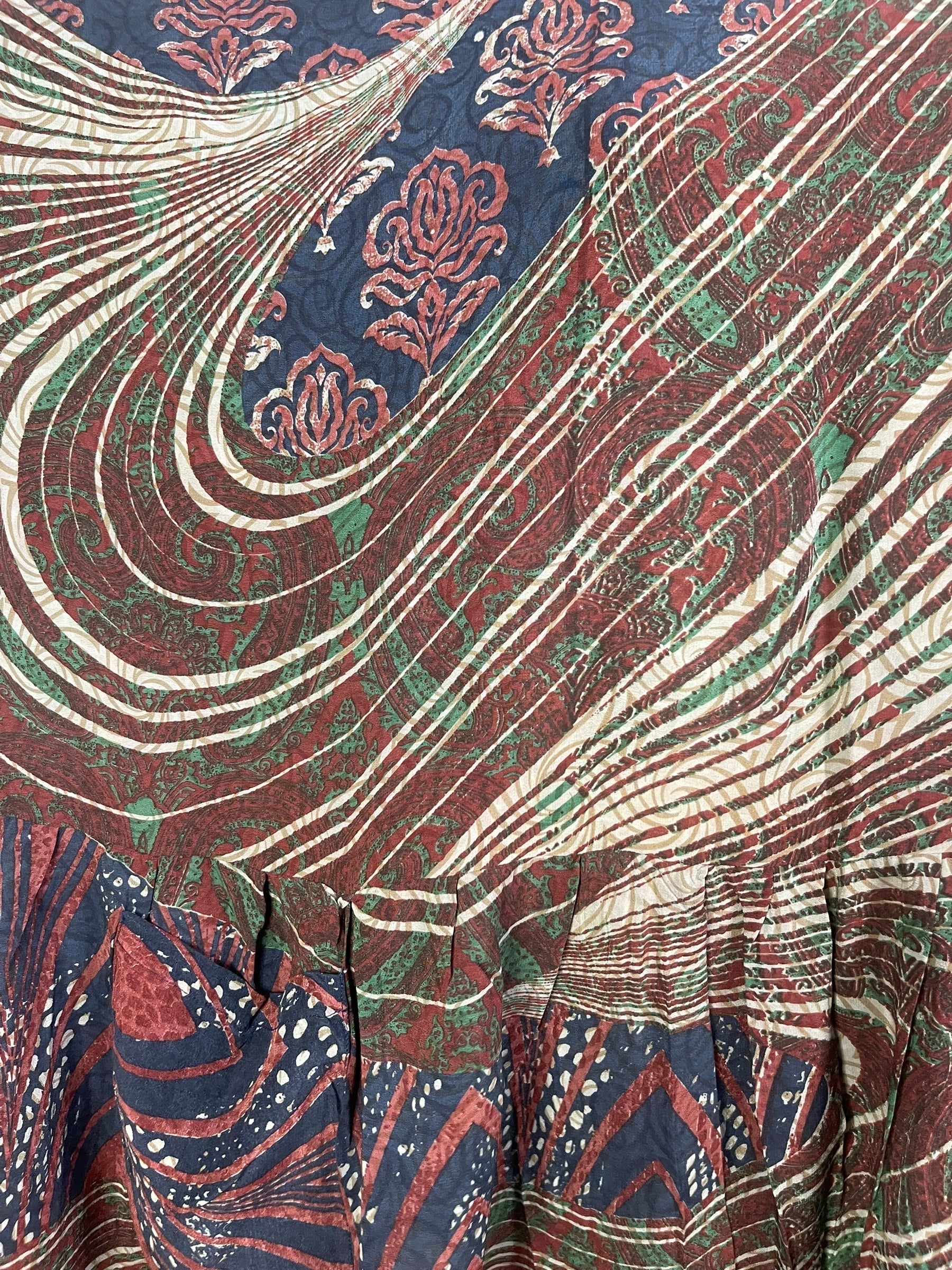 If you look very closely, you will see that the silks in this collection show some of the character of their previous incarnations through the appliqués that have been lovingly applied to bring new life to the fabric. This piece is a reminder that we are part of a collective journey to which we all add a little something.About This Style