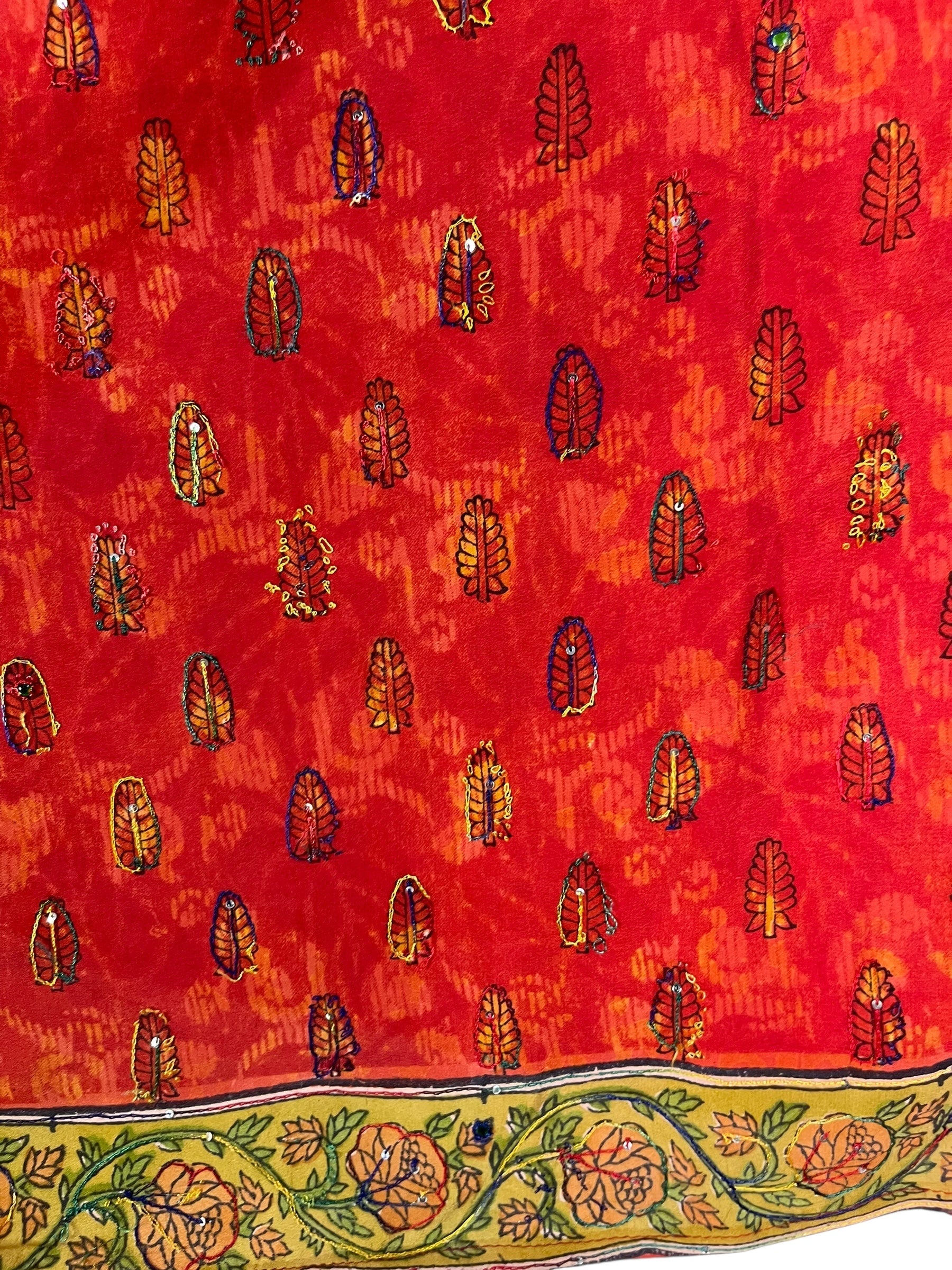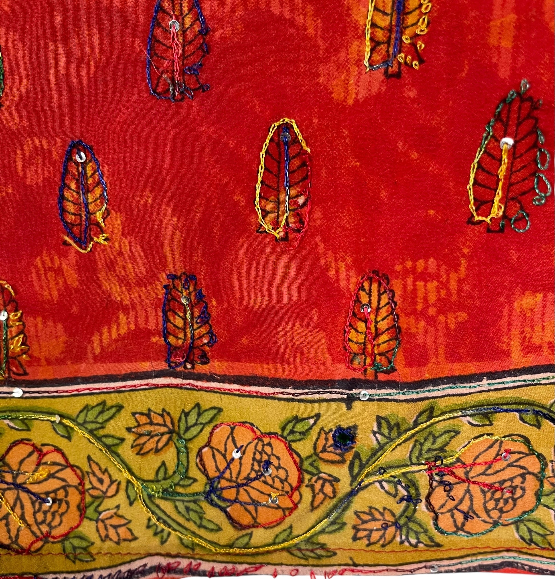 In Eastern philosophy, an Avatar is an incarnation that teaches how to evolve virtues of the past into the present. The Pure Upcycled Silk Avatar Collection is made from vintage pure silk saris, chosen and worn by women in the past to celebrate their lives.If you look very closely, you will see that the silks in this collection show some of the character of their previous incarnations through the appliqués that have been lovingly applied to bring new life to the fabric. This piece is a reminder that we are part of a collective journey to which we all add a little something.