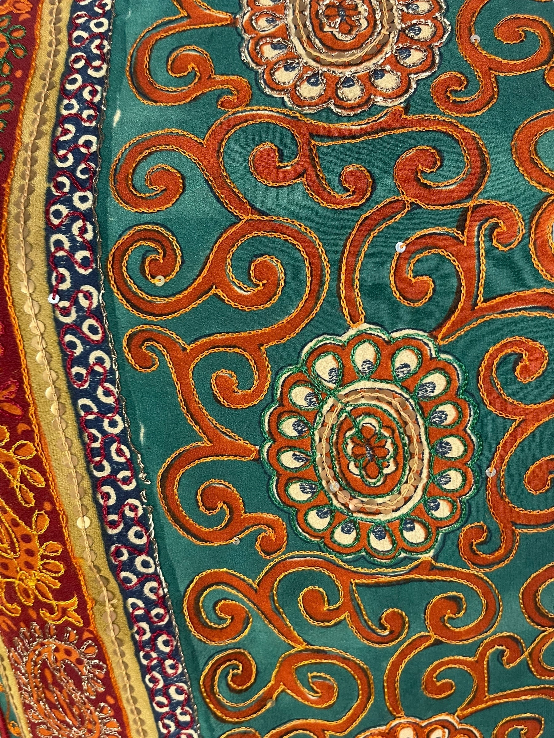 In Eastern philosophy, an Avatar is an incarnation that teaches how to evolve virtues of the past into the present. The Pure Upcycled Silk Avatar Collection is made from vintage pure silk saris, chosen and worn by women in the past to celebrate their lives.If you look very closely, you will see that the silks in this collection show some of the character of their previous incarnations through the appliqués that have been lovingly applied to bring new life to the fabric. This piece is a reminder that we are part of a collective journey to which we all add a little something.