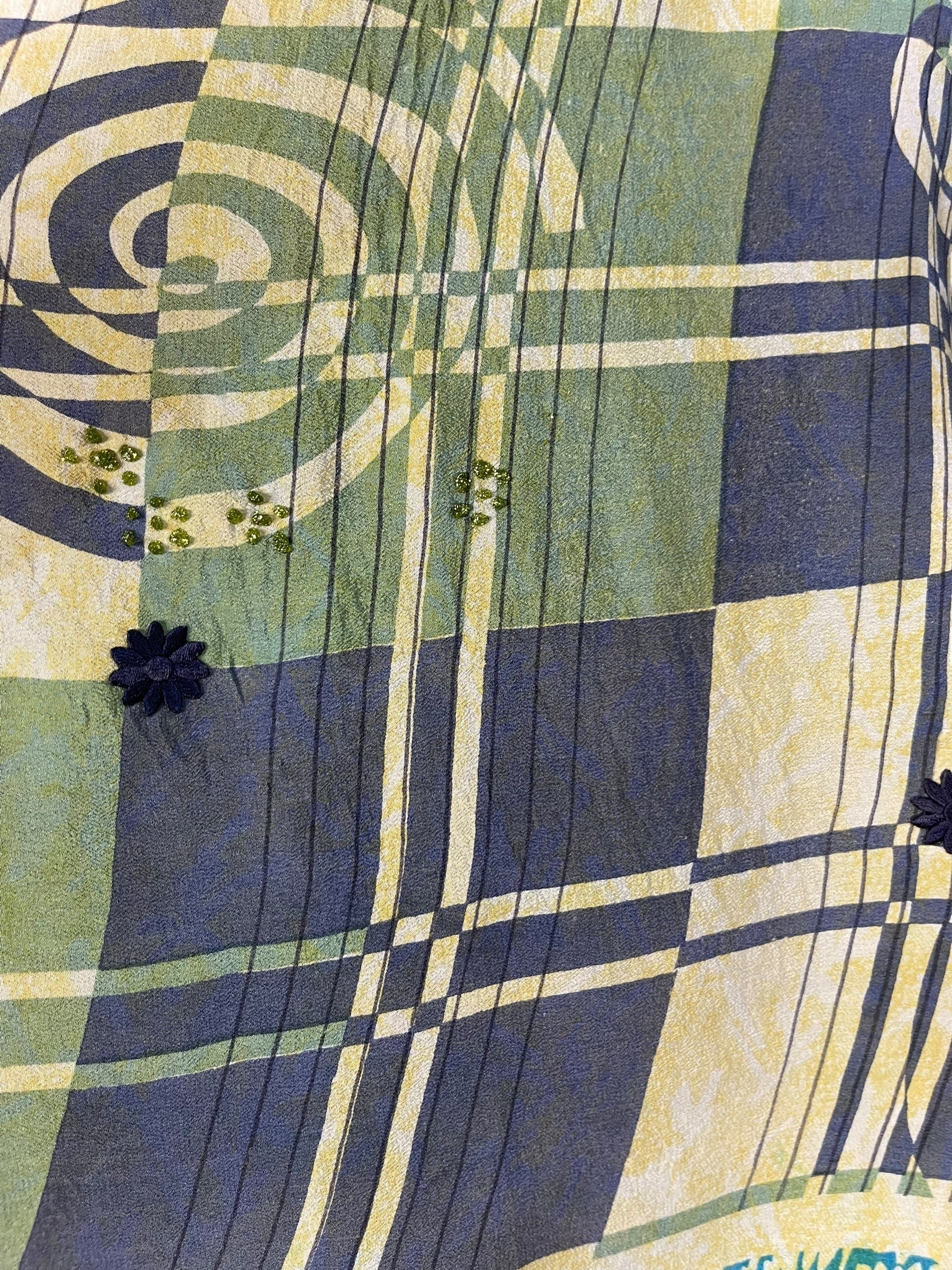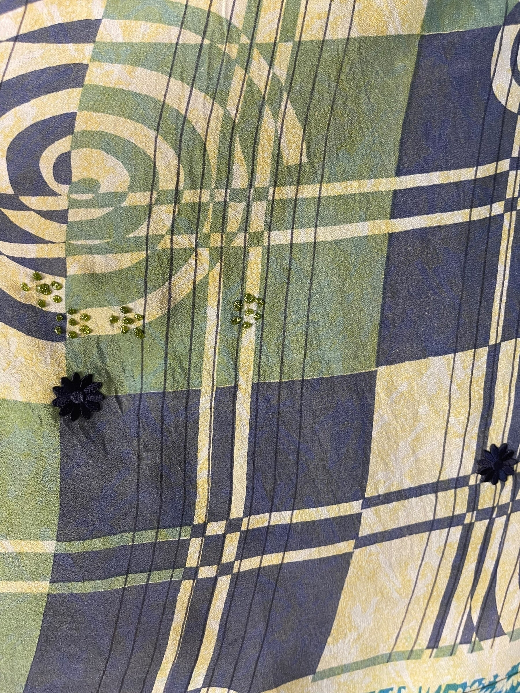 In Eastern philosophy, an Avatar is an incarnation that teaches how to evolve virtues of the past into the present. The Pure Upcycled Silk Avatar Collection is made from vintage pure silk saris, chosen and worn by women in the past to celebrate their lives.If you look very closely, you will see that the silks in this collection show some of the character of their previous incarnations through the appliqués that have been lovingly applied to bring new life to the fabric. This piece is a reminder that we are part of a collective journey to which we all add a little something.