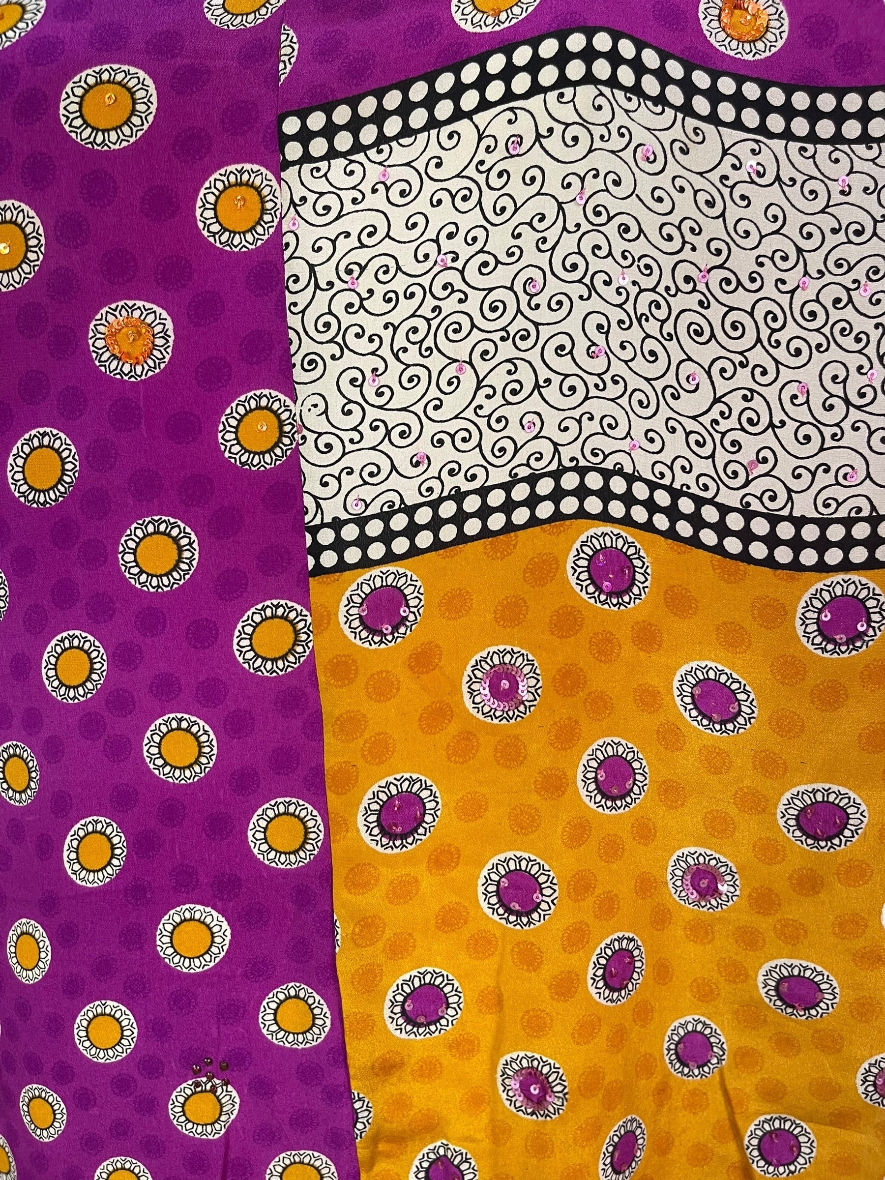 In Eastern philosophy, an Avatar is an incarnation that teaches how to evolve virtues of the past into the present. The Pure Upcycled Silk Avatar Collection is made from vintage pure silk saris, chosen and worn by women in the past to celebrate their lives.If you look very closely, you will see that the silks in this collection show some of the character of their previous incarnations through the appliqués that have been lovingly applied to bring new life to the fabric. This piece is a reminder that we are part of a collective journey to which we all add a little something.
