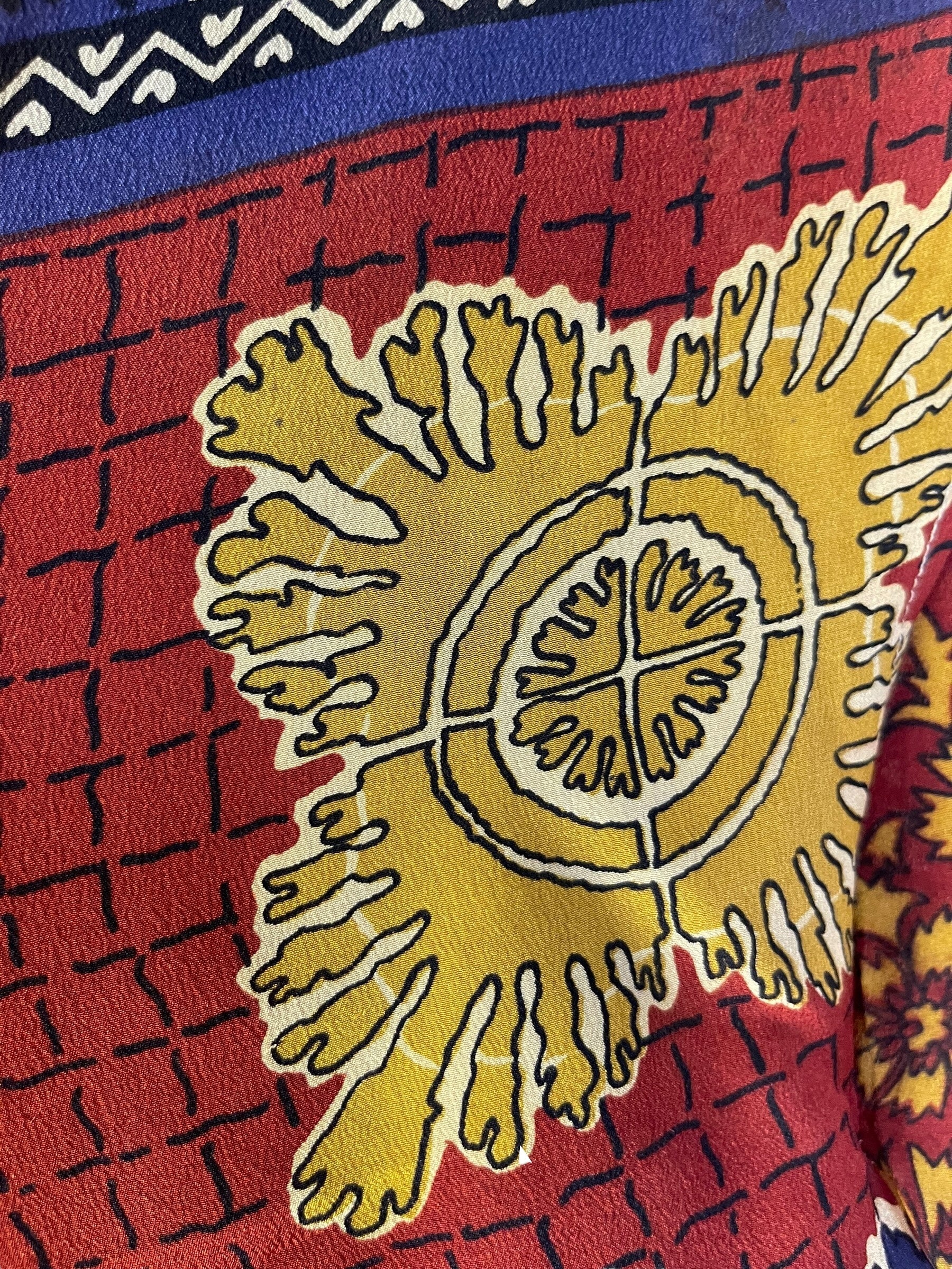 In Eastern philosophy, an Avatar is an incarnation that teaches how to evolve virtues of the past into the present. The Pure Upcycled Silk Avatar Collection is made from vintage pure silk saris, chosen and worn by women in the past to celebrate their lives.If you look very closely, you will see that the silks in this collection show some of the character of their previous incarnations through the appliqués that have been lovingly applied to bring new life to the fabric. This piece is a reminder that we are part of a collective journey to which we all add a little something.