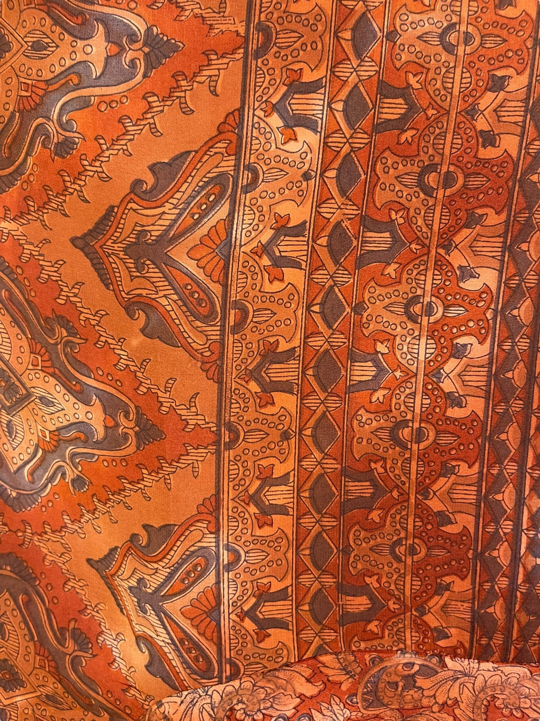 In Eastern philosophy, an Avatar is an incarnation that teaches how to evolve virtues of the past into the present. The Pure Upcycled Silk Avatar Collection is made from vintage pure silk saris, chosen and worn by women in the past to celebrate their lives.If you look very closely, you will see that the silks in this collection show some of the character of their previous incarnations through the appliqués that have been lovingly applied to bring new life to the fabric. This piece is a reminder that we are part of a collective journey to which we all add a little something.