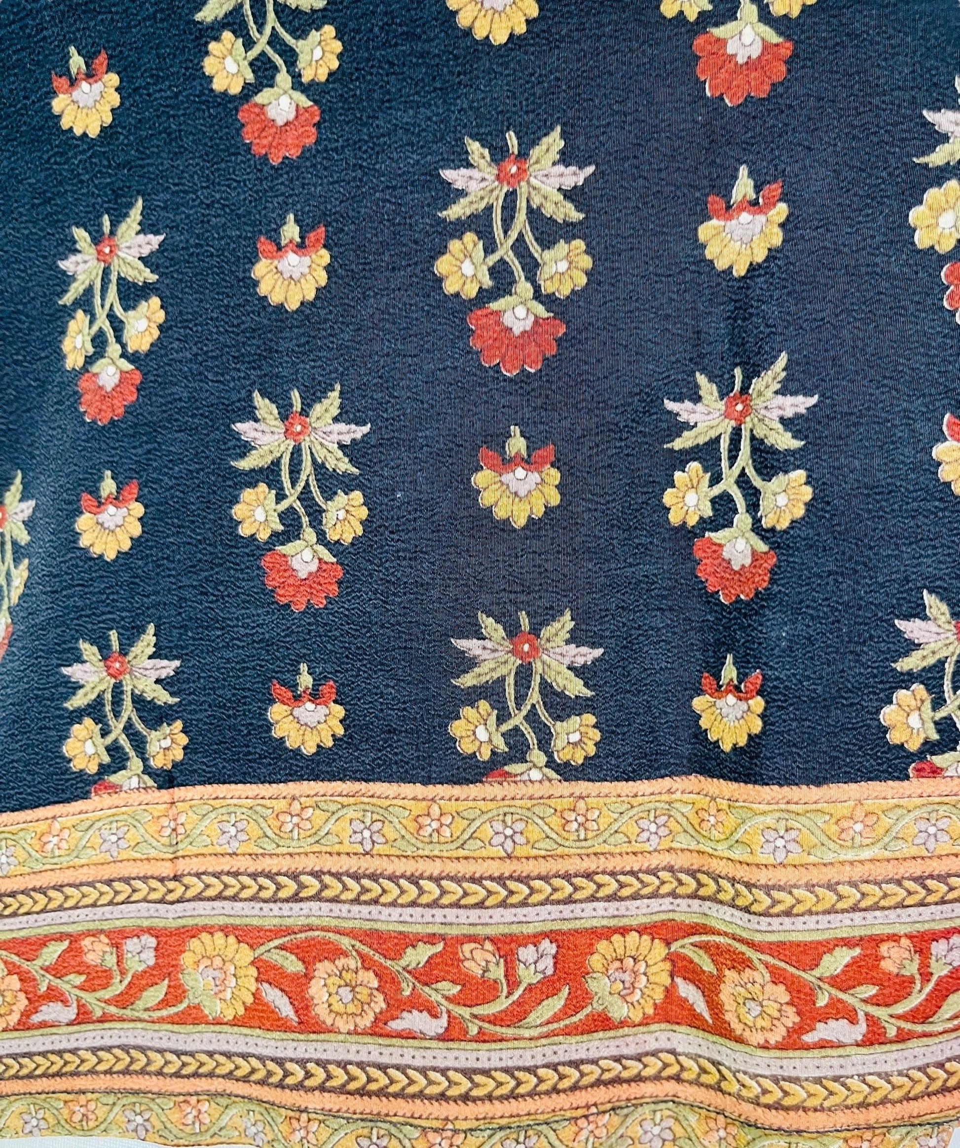 In Eastern philosophy, an Avatar is an incarnation that teaches how to evolve virtues of the past into the present. The Pure Upcycled Silk Avatar Collection is made from vintage pure silk saris, chosen and worn by women in the past to celebrate their lives.If you look very closely, you will see that the silks in this collection show some of the character of their previous incarnations through the appliqués that have been lovingly applied to bring new life to the fabric. This piece is a reminder that we are part of a collective journey to which we all add a little something.