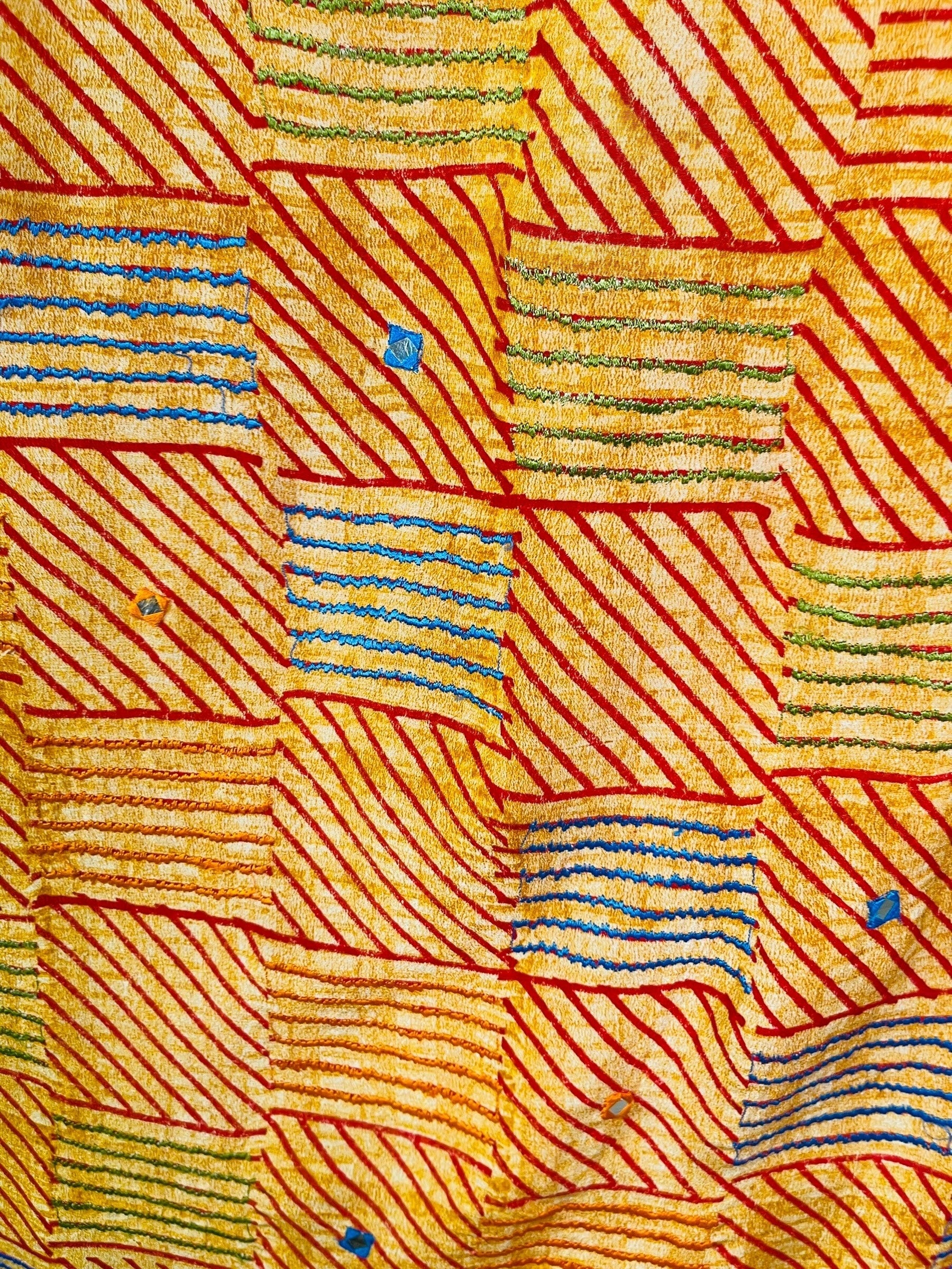 In Eastern philosophy, an Avatar is an incarnation that teaches how to evolve virtues of the past into the present. The Pure Upcycled Silk Avatar Collection is made from vintage pure silk saris, chosen and worn by women in the past to celebrate their lives.If you look very closely, you will see that the silks in this collection show some of the character of their previous incarnations through the appliqués that have been lovingly applied to bring new life to the fabric. This piece is a reminder that we are part of a collective journey to which we all add a little something.