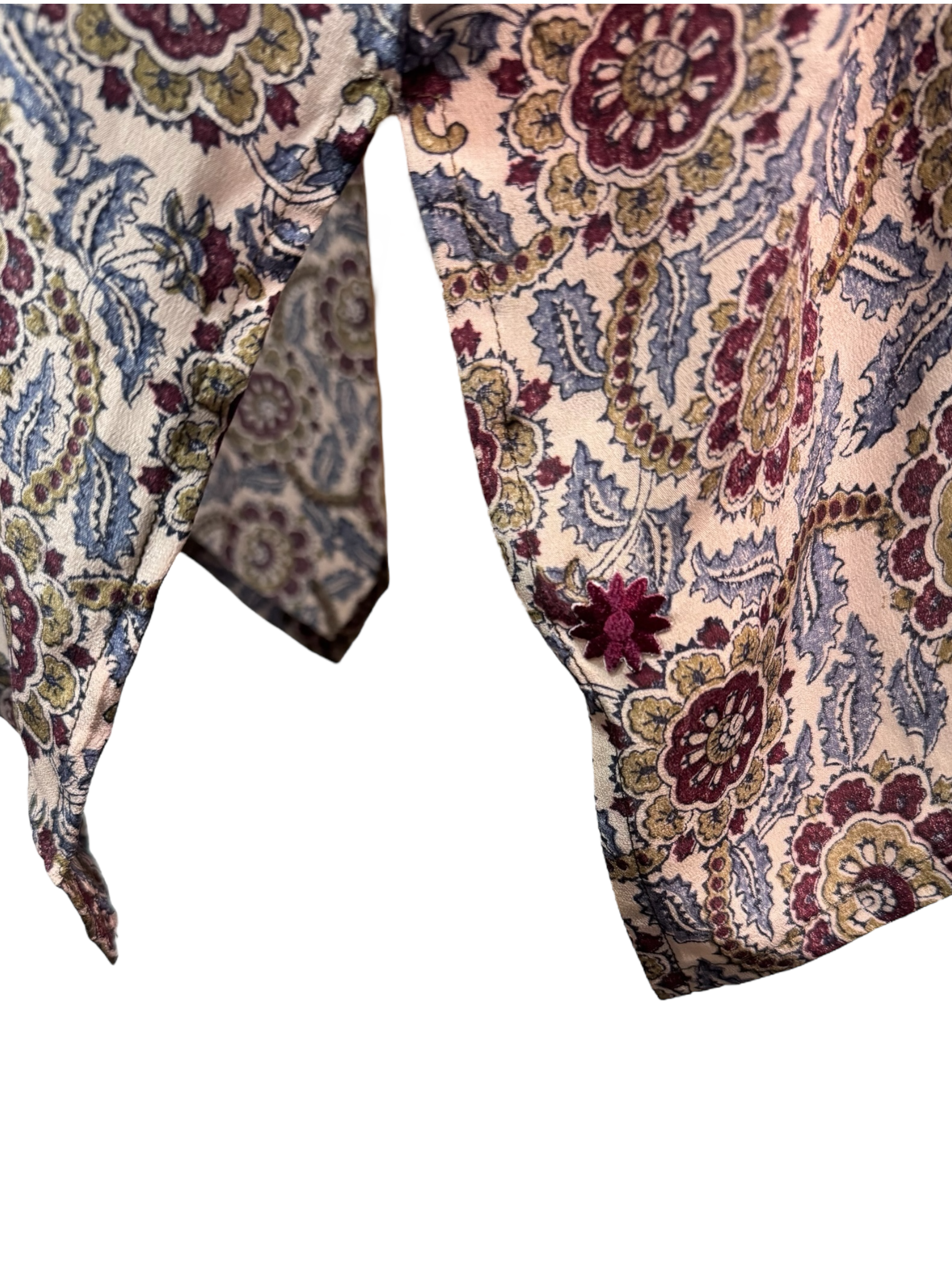 In Eastern philosophy, an Avatar is an incarnation that teaches how to evolve virtues of the past into the present. The Pure Upcycled Silk Avatar Collection is made from vintage pure silk saris, chosen and worn by women in the past to celebrate their lives.If you look very closely, you will see that the silks in this collection show some of the character of their previous incarnations through the appliqués that have been lovingly applied to bring new life to the fabric. This piece is a reminder that we are part of a collective journey to which we all add a little something.