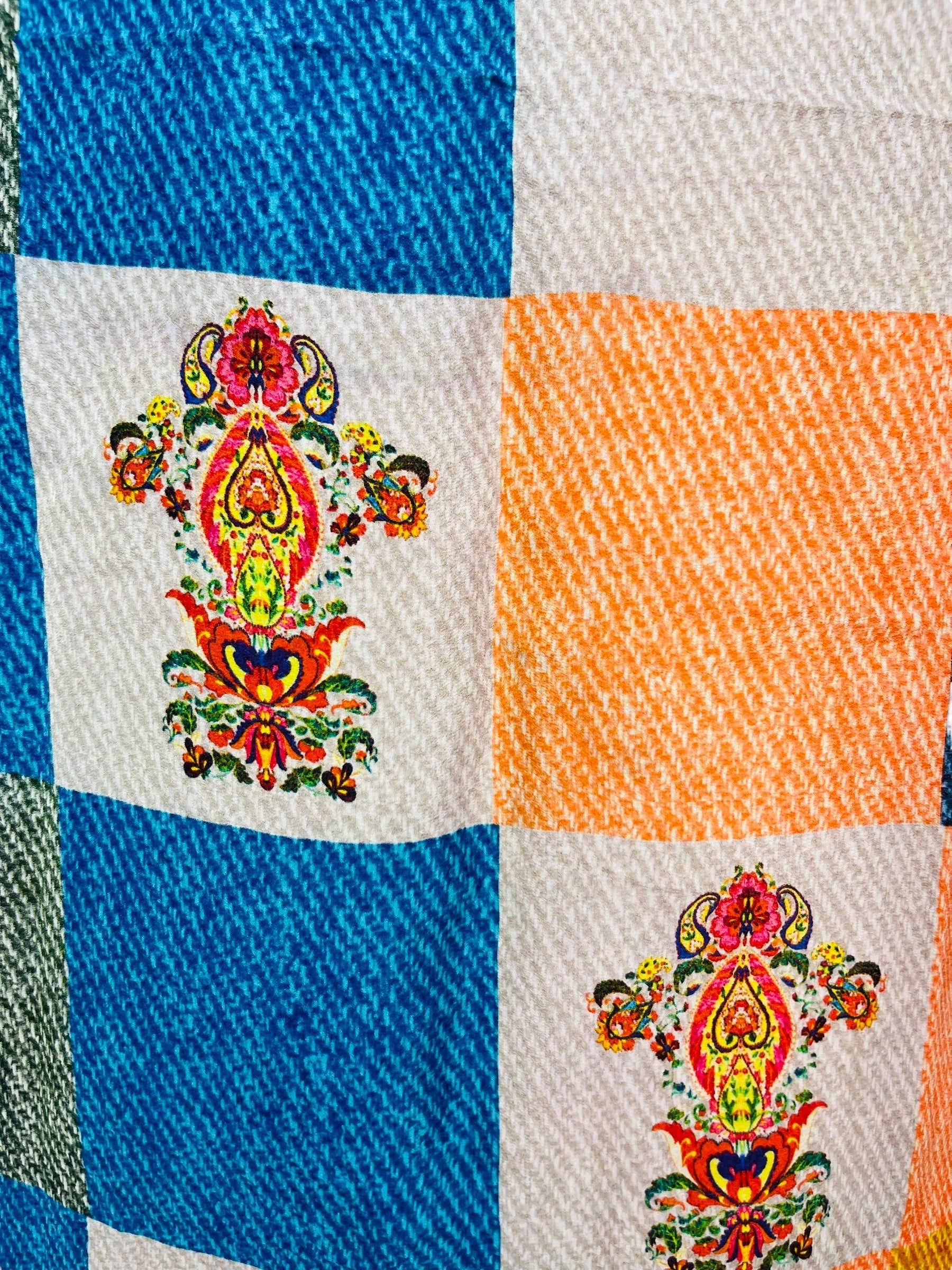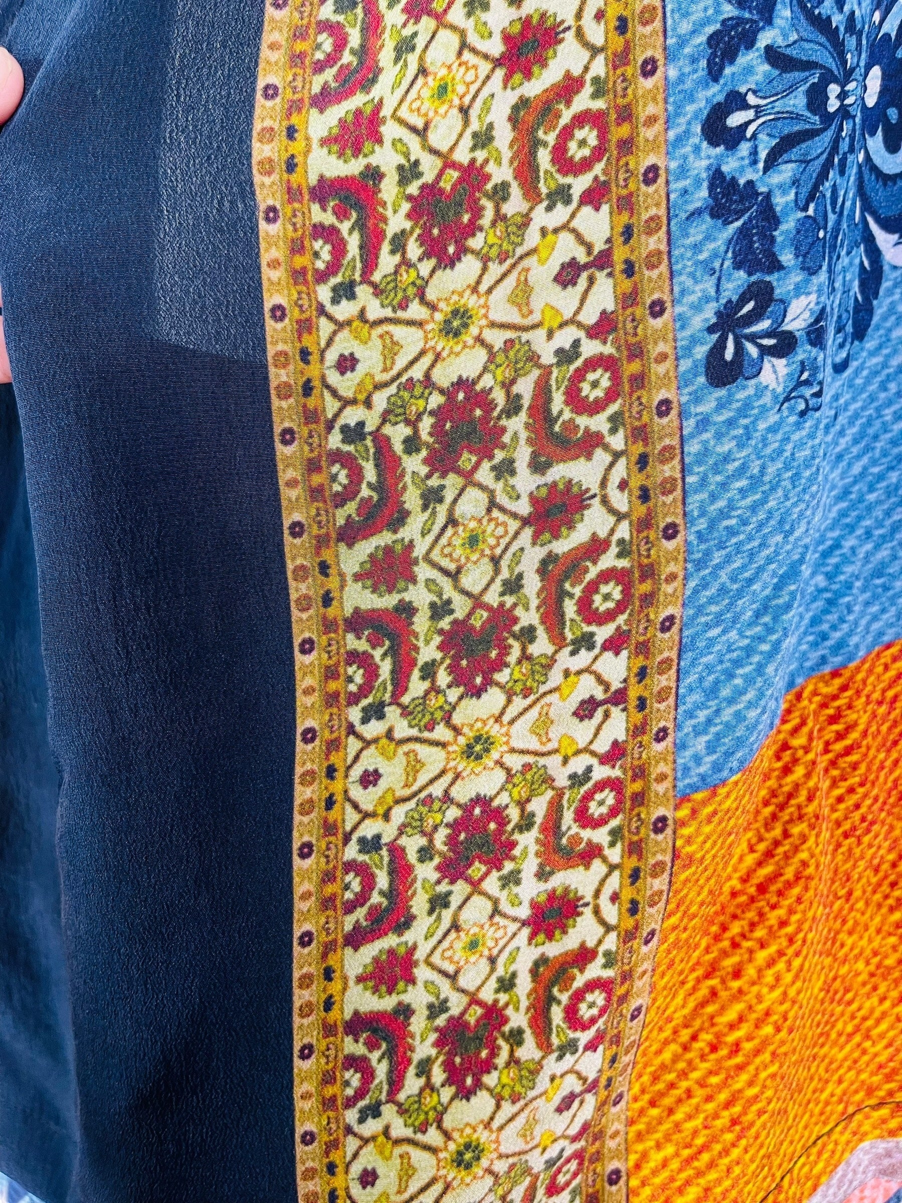 In Eastern philosophy, an Avatar is an incarnation that teaches how to evolve virtues of the past into the present. The Pure Upcycled Silk Avatar Collection is made from vintage pure silk saris, chosen and worn by women in the past to celebrate their lives.If you look very closely, you will see that the silks in this collection show some of the character of their previous incarnations through the appliqués that have been lovingly applied to bring new life to the fabric. This piece is a reminder that we are part of a collective journey to which we all add a little something.