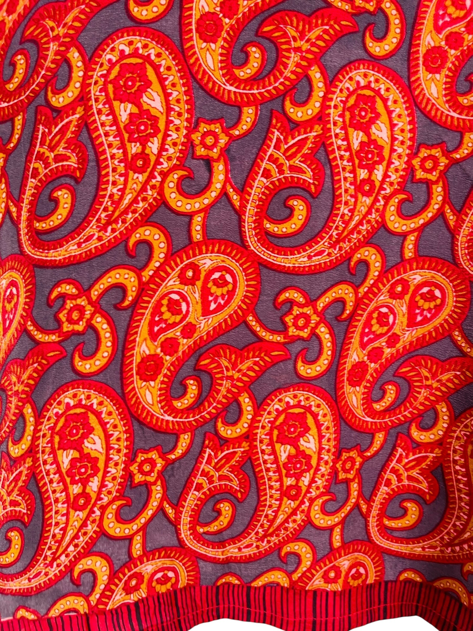 In Eastern philosophy, an Avatar is an incarnation that teaches how to evolve virtues of the past into the present. The Pure Upcycled Silk Avatar Collection is made from vintage pure silk saris, chosen and worn by women in the past to celebrate their lives.If you look very closely, you will see that the silks in this collection show some of the character of their previous incarnations through the appliqués that have been lovingly applied to bring new life to the fabric. This piece is a reminder that we are part of a collective journey to which we all add a little something.