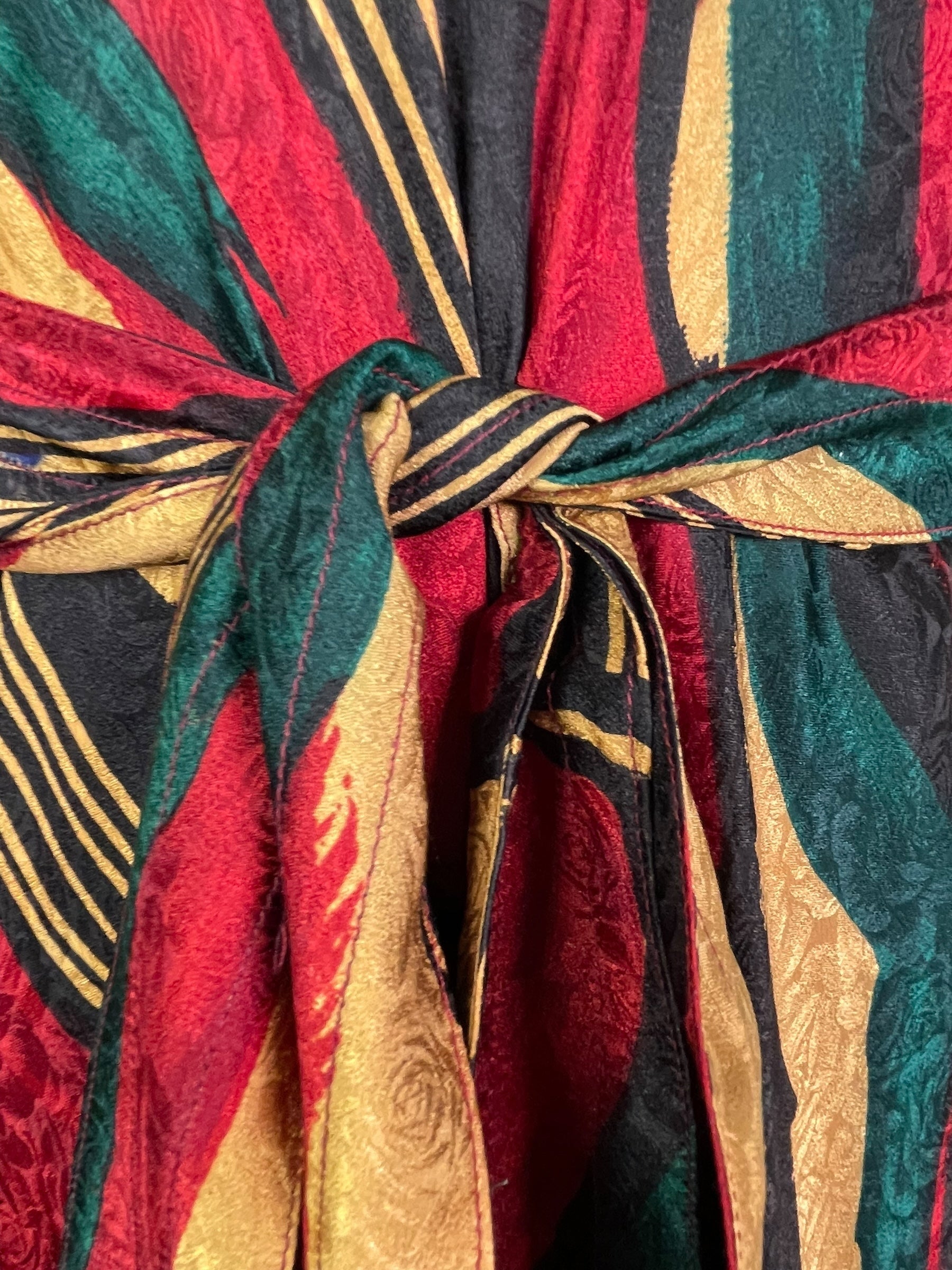In Eastern philosophy, an Avatar is an incarnation that teaches how to evolve virtues of the past into the present. The Pure Upcycled Silk Avatar Collection is made from vintage pure silk saris, chosen and worn by women in the past to celebrate their lives.If you look very closely, you will see that the silks in this collection show some of the character of their previous incarnations through the appliqués that have been lovingly applied to bring new life to the fabric. This piece is a reminder that we are part of a collective journey to which we all add a little something.