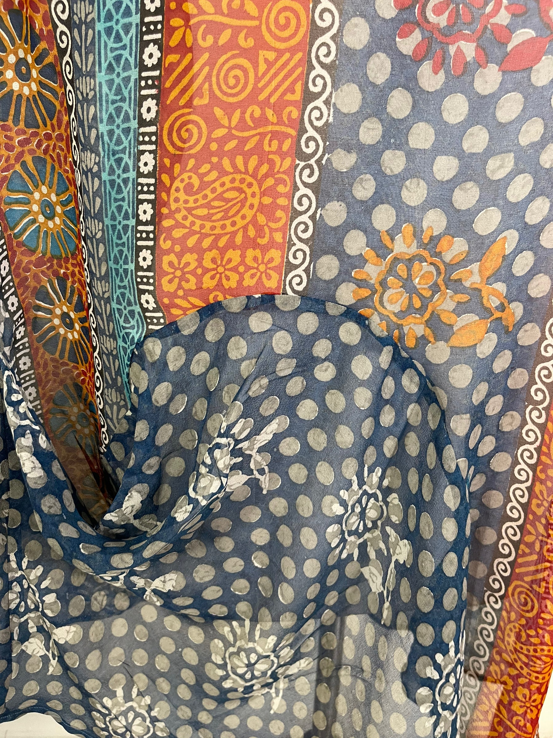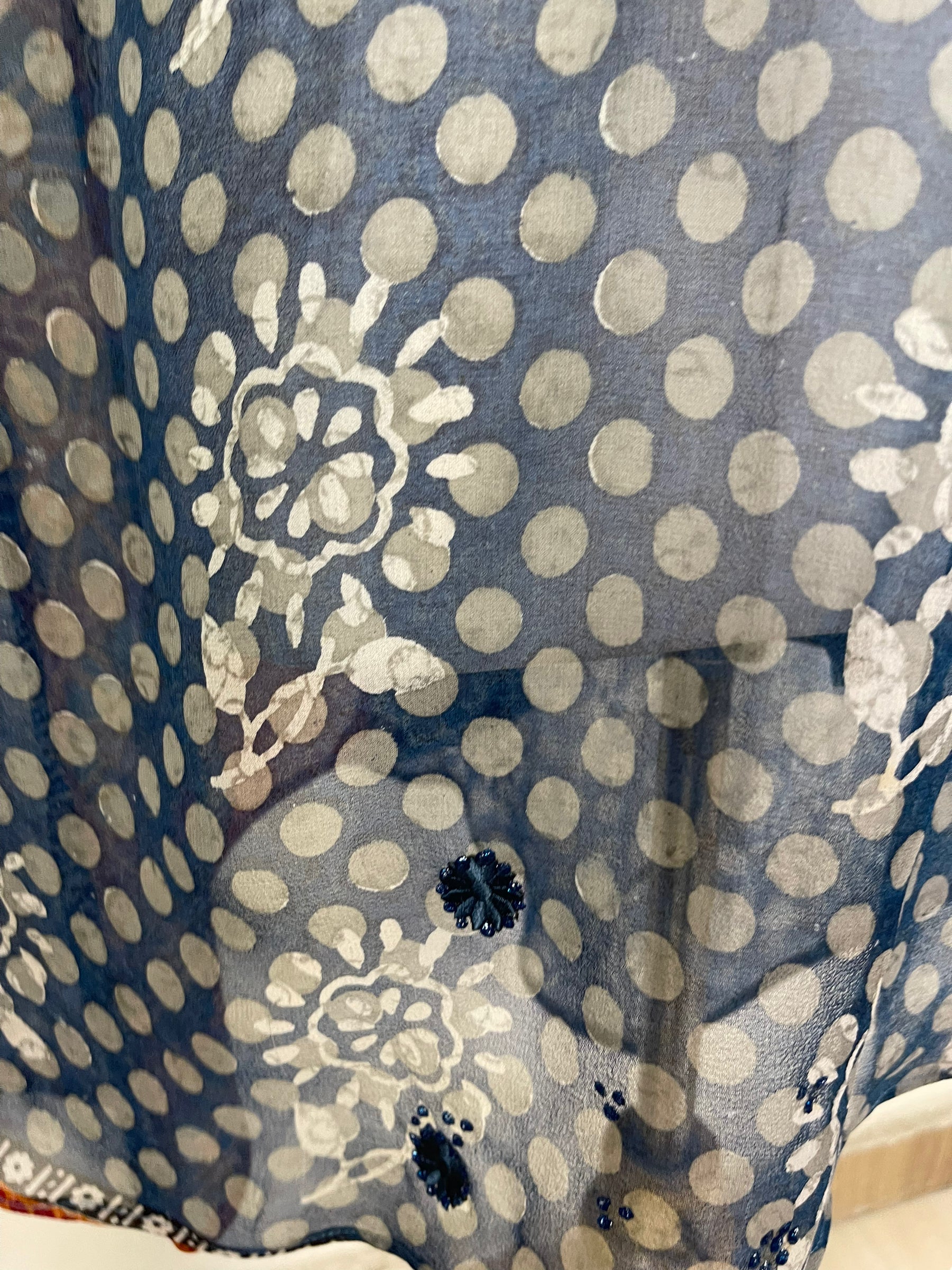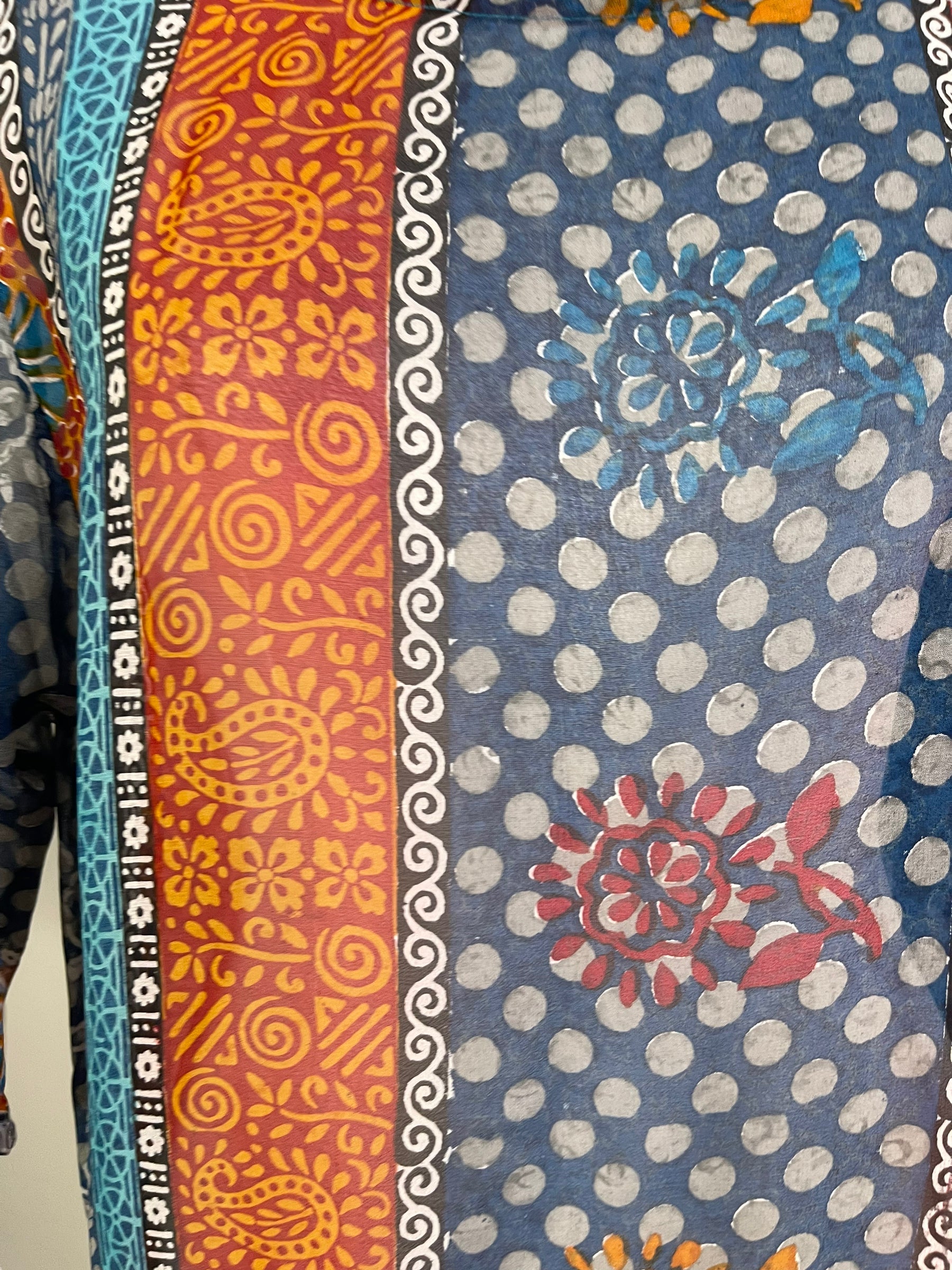 In Eastern philosophy, an Avatar is an incarnation that teaches how to evolve virtues of the past into the present. The Pure Upcycled Silk Avatar Collection is made from vintage pure silk saris, chosen and worn by women in the past to celebrate their lives.If you look very closely, you will see that the silks in this collection show some of the character of their previous incarnations through the appliqués that have been lovingly applied to bring new life to the fabric. This piece is a reminder that we are part of a collective journey to which we all add a little something.