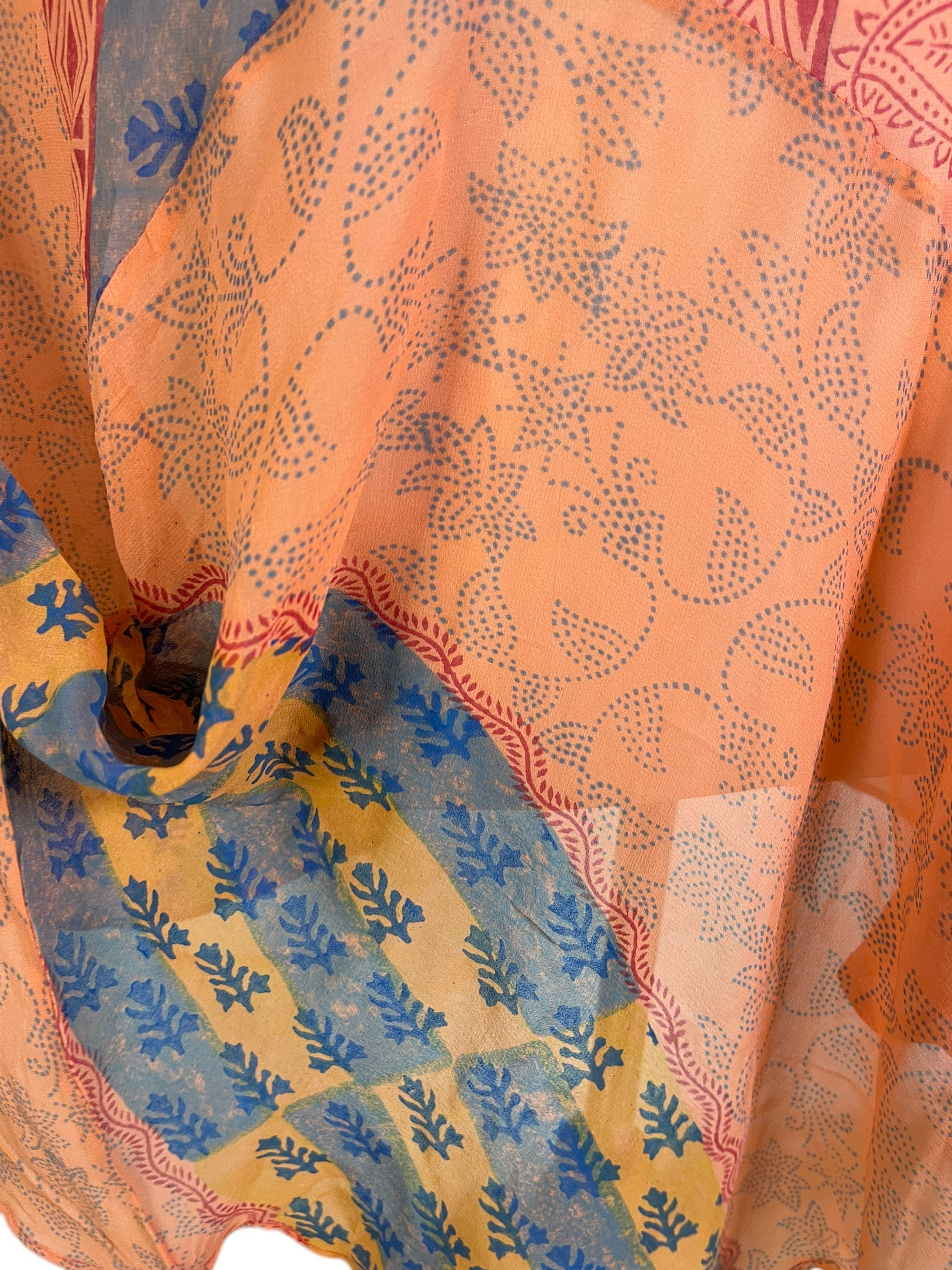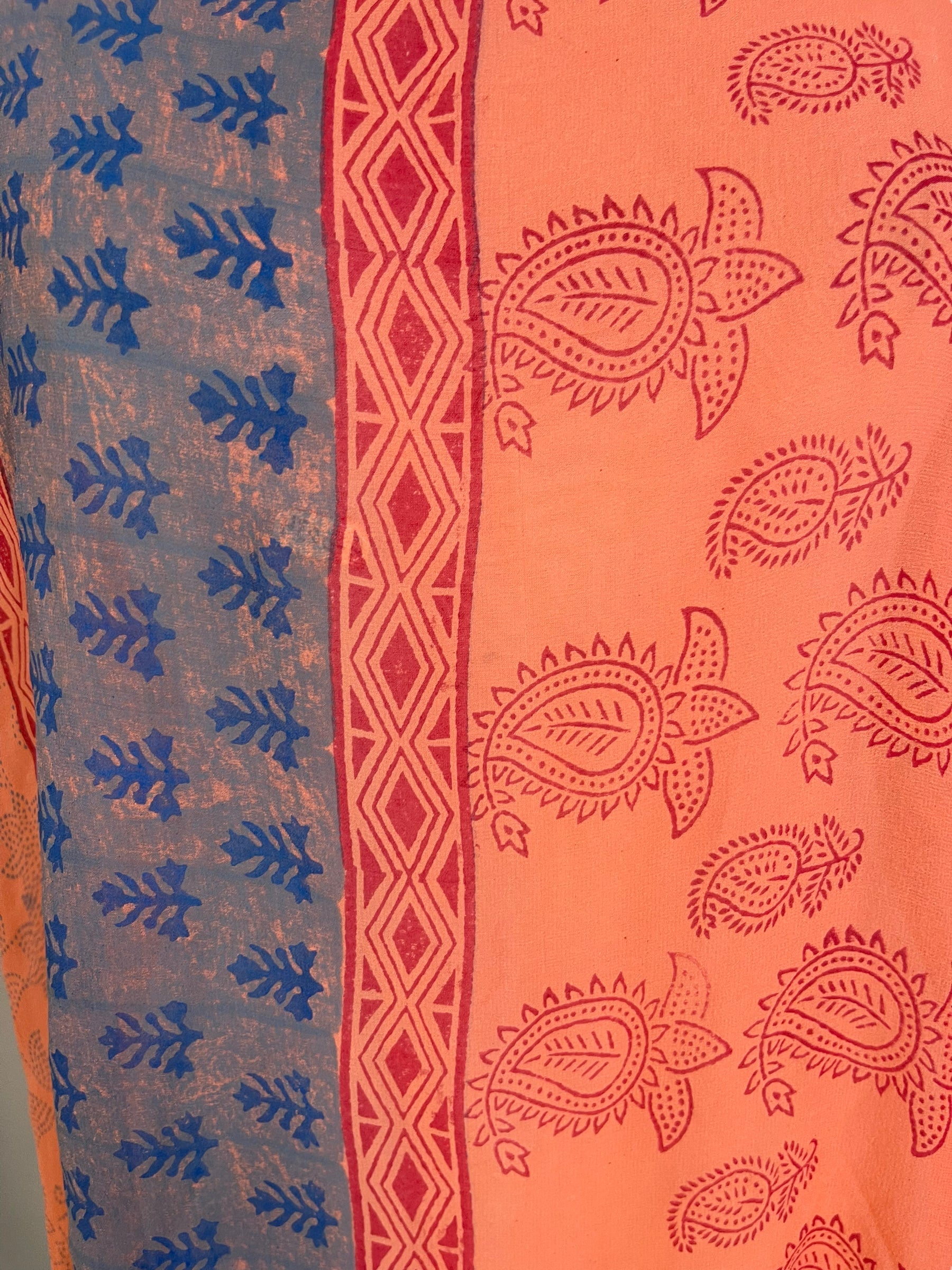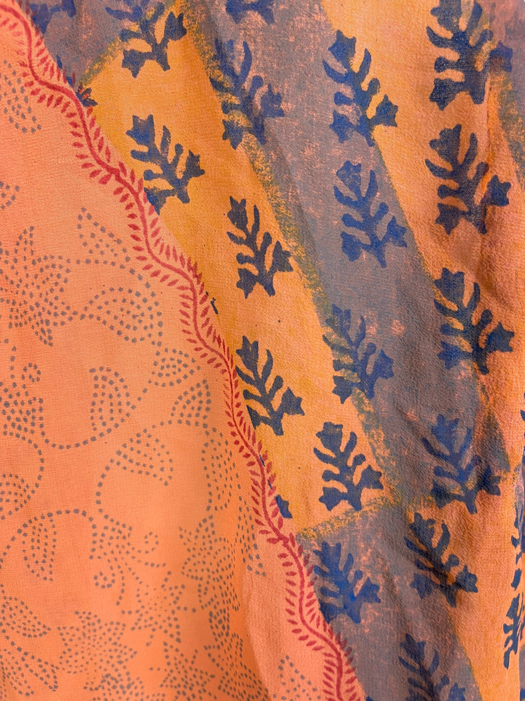In Eastern philosophy, an Avatar is an incarnation that teaches how to evolve virtues of the past into the present. The Pure Upcycled Silk Avatar Collection is made from vintage pure silk saris, chosen and worn by women in the past to celebrate their lives.If you look very closely, you will see that the silks in this collection show some of the character of their previous incarnations through the appliqués that have been lovingly applied to bring new life to the fabric. This piece is a reminder that we are part of a collective journey to which we all add a little something.