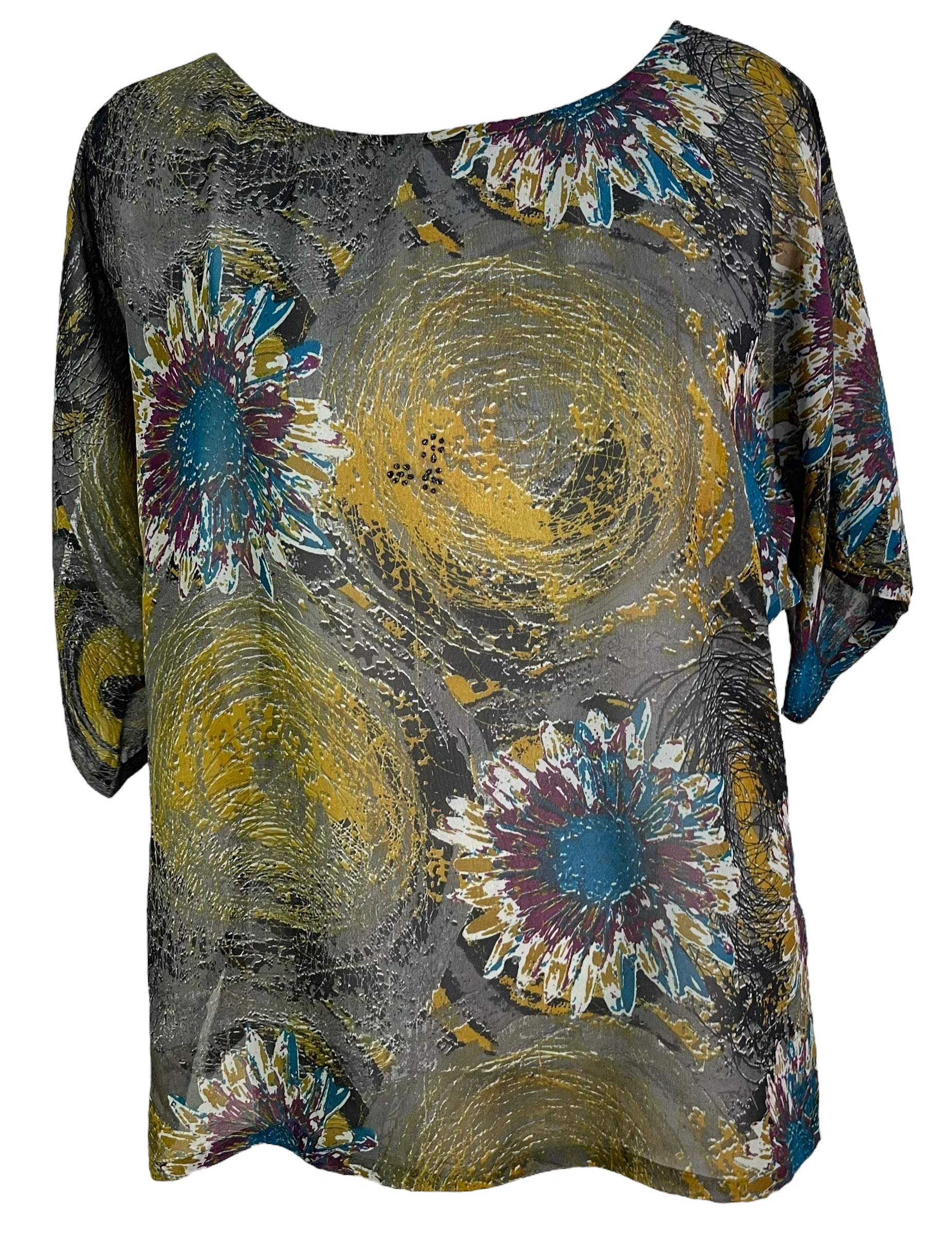 PRG6322 Sheer Avatar Pure Silk Side Slit Top