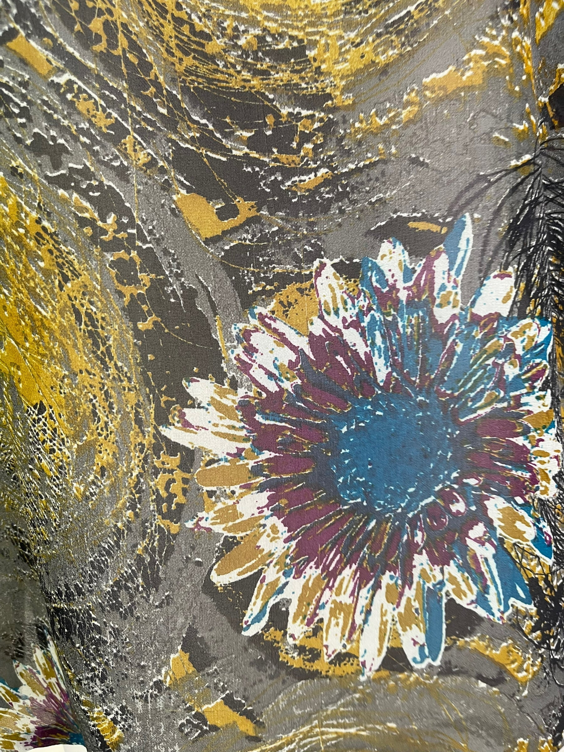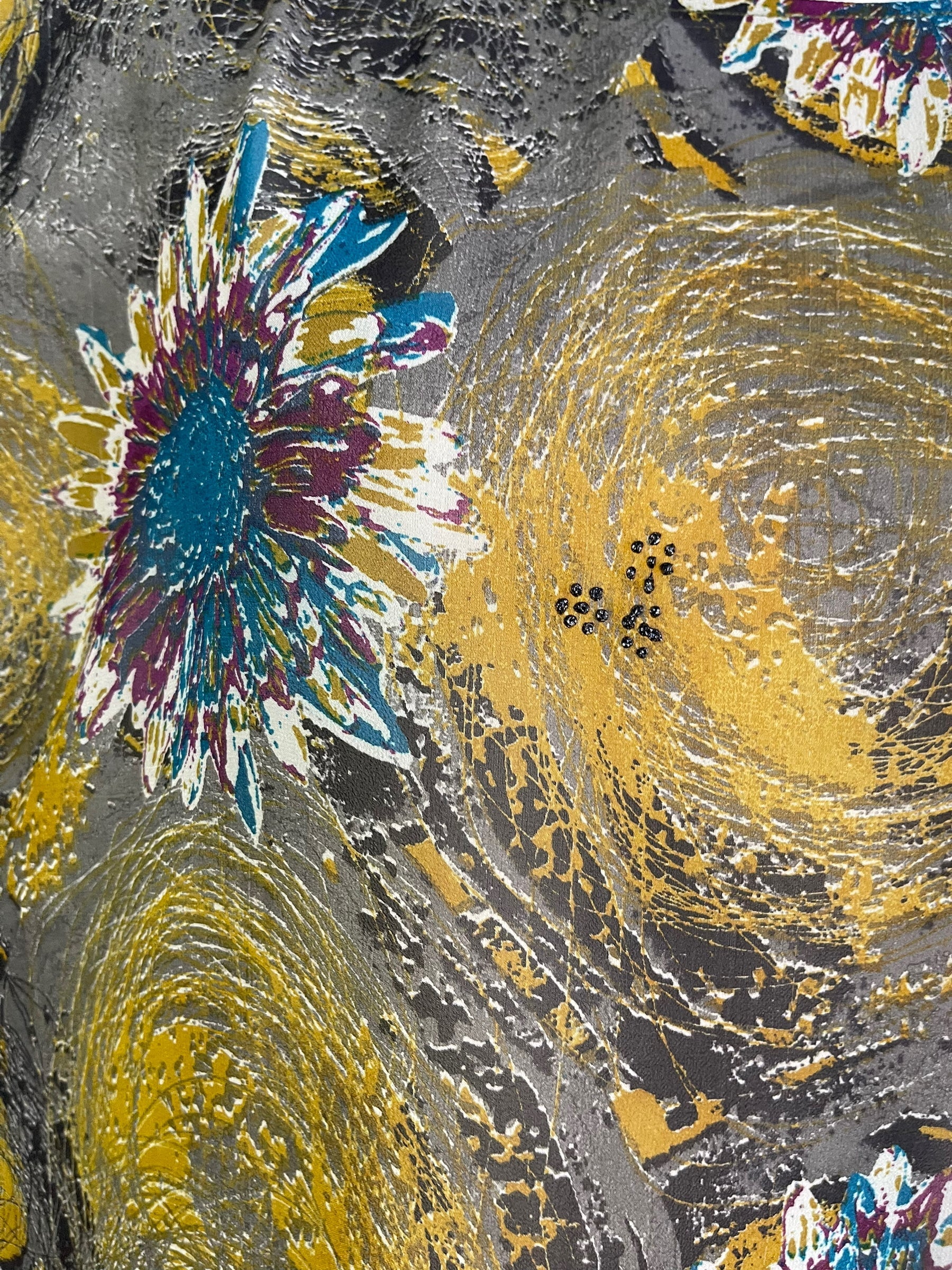 If you look very closely, you will see that the silks in this collection show some of the character of their previous incarnations through the appliqués that have been lovingly applied to bring new life to the fabric. This piece is a reminder that we are part of a collective journey to which we all add a little something.
