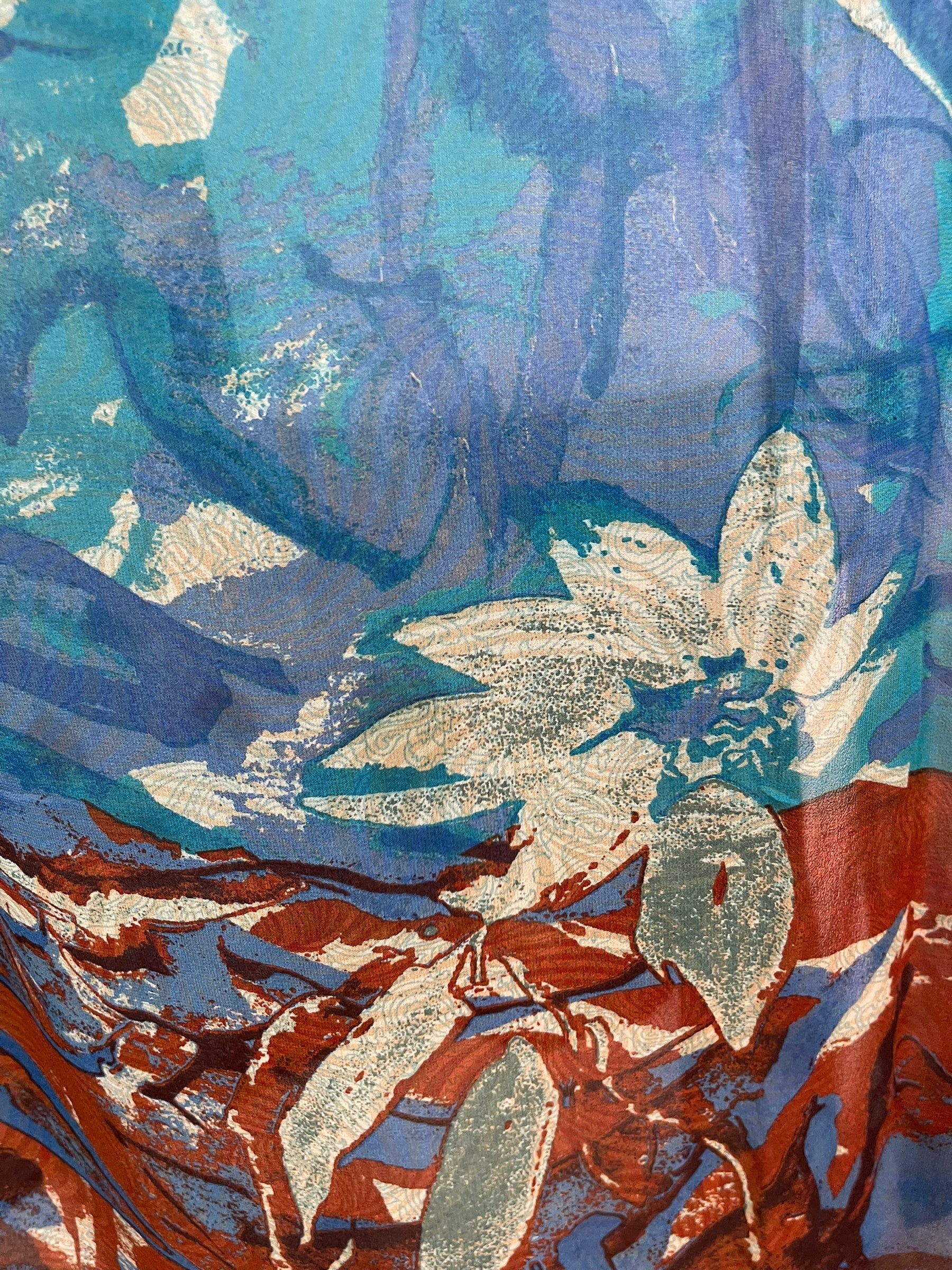 In Eastern philosophy, an Avatar is an incarnation that teaches how to evolve virtues of the past into the present. The Pure Upcycled Silk Avatar Collection is made from vintage pure silk saris, chosen and worn by women in the past to celebrate their lives.If you look very closely, you will see that the silks in this collection show some of the character of their previous incarnations through the appliqués that have been lovingly applied to bring new life to the fabric. This piece is a reminder that we are part of a collective journey to which we all add a little something.